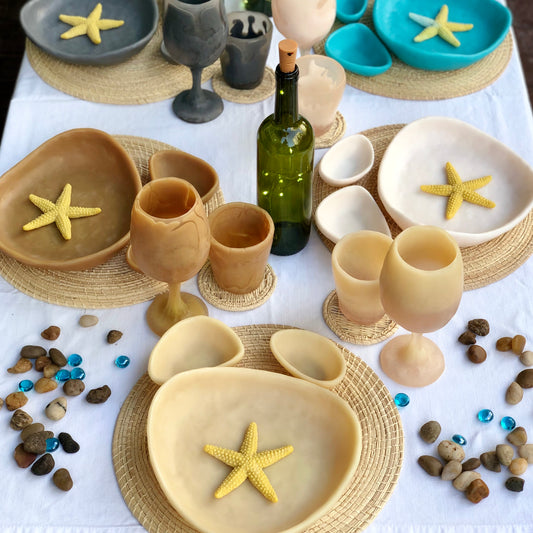 1 Puesto 🍽️ Vajilla OCEAN & BEACH x 6 Piezas en Resina Especial