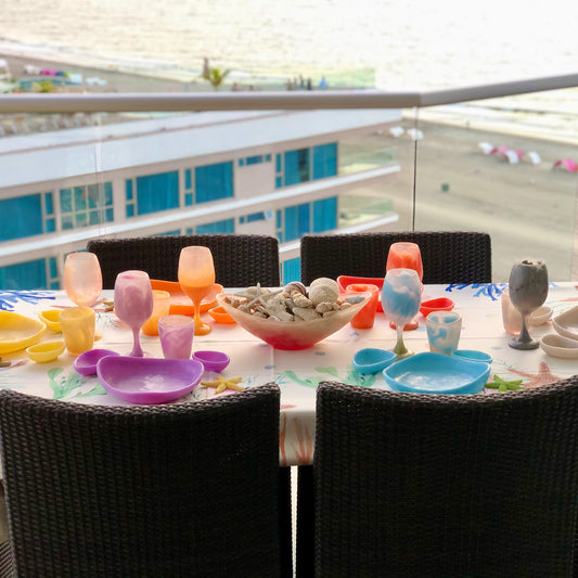 1 Puesto 🍽️ VAJILLA OCEAN & BEACH versión SUNSET x 6 Piezas en Resina Especial