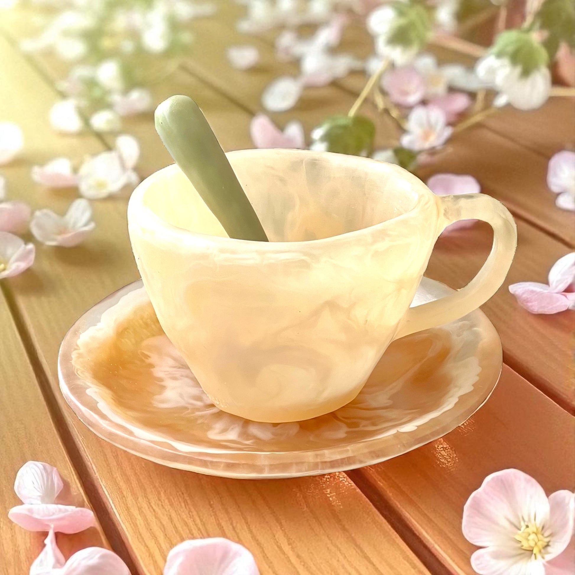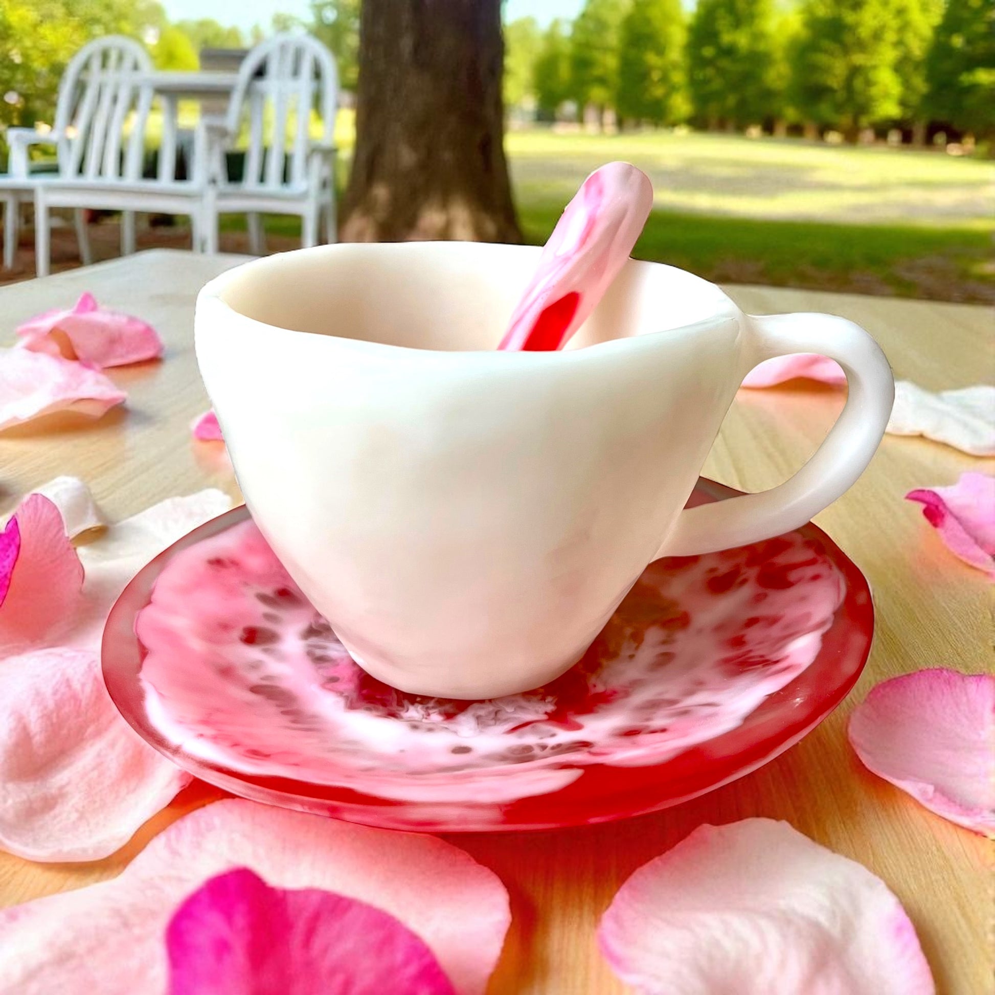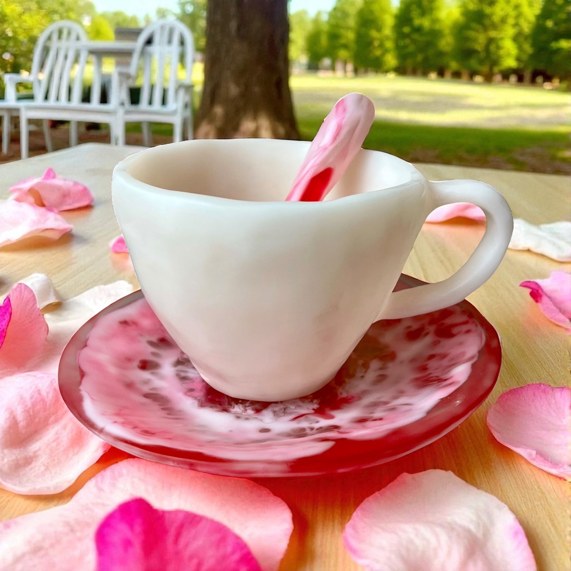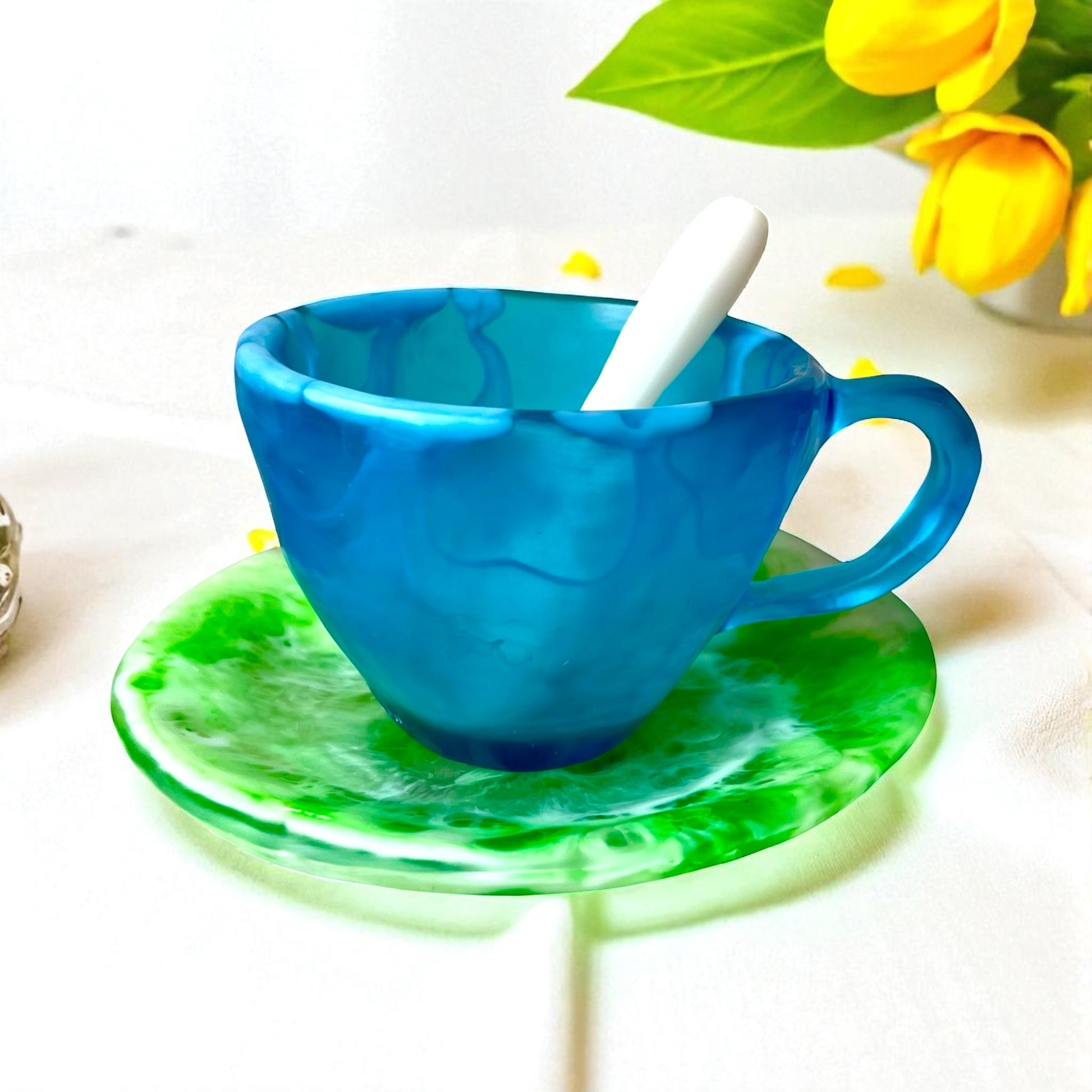 1 POCILLO Grande ☕️ 1 Plato Pequeño + 1 cuchara en Resina Especial 375 ml