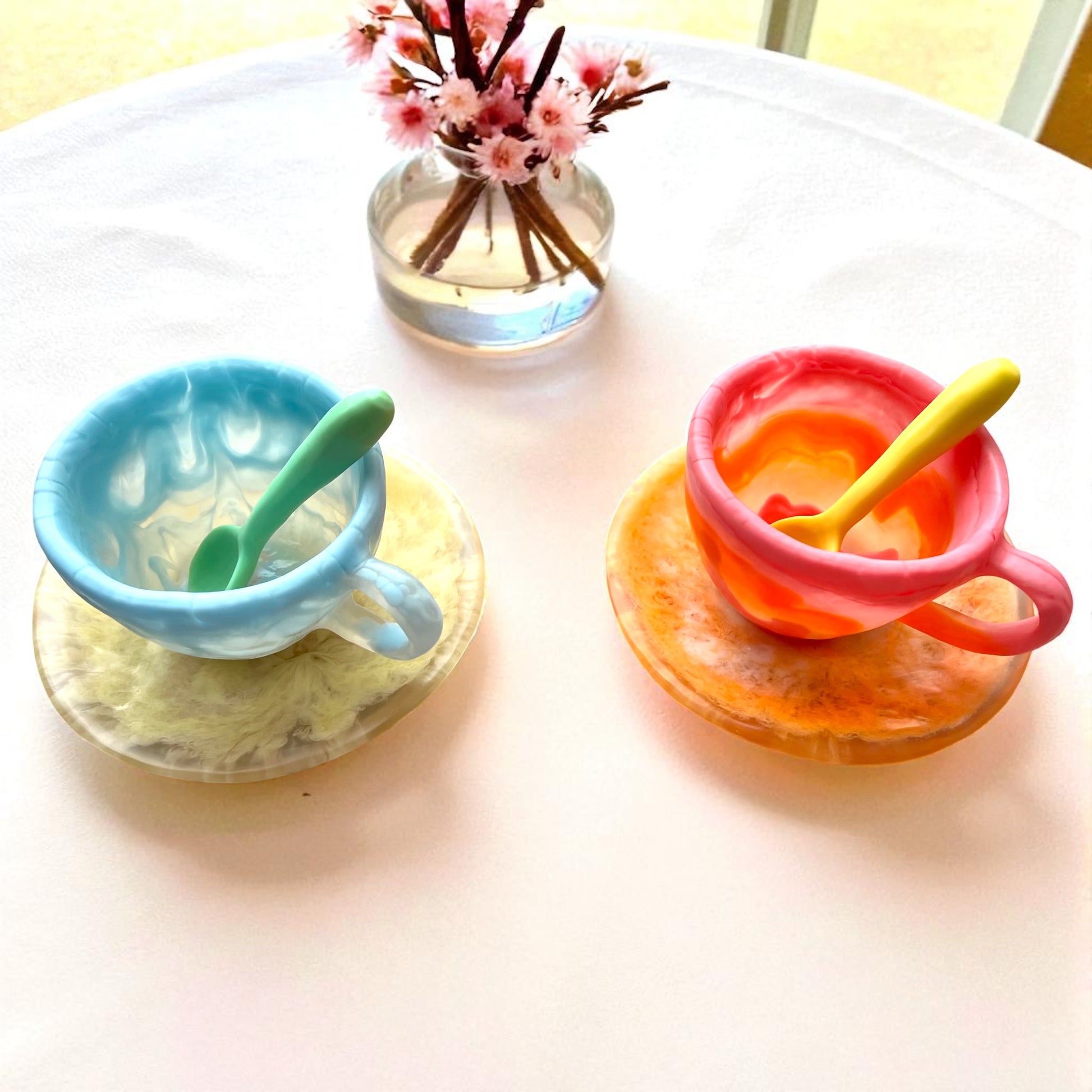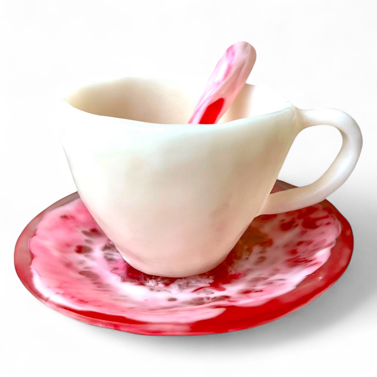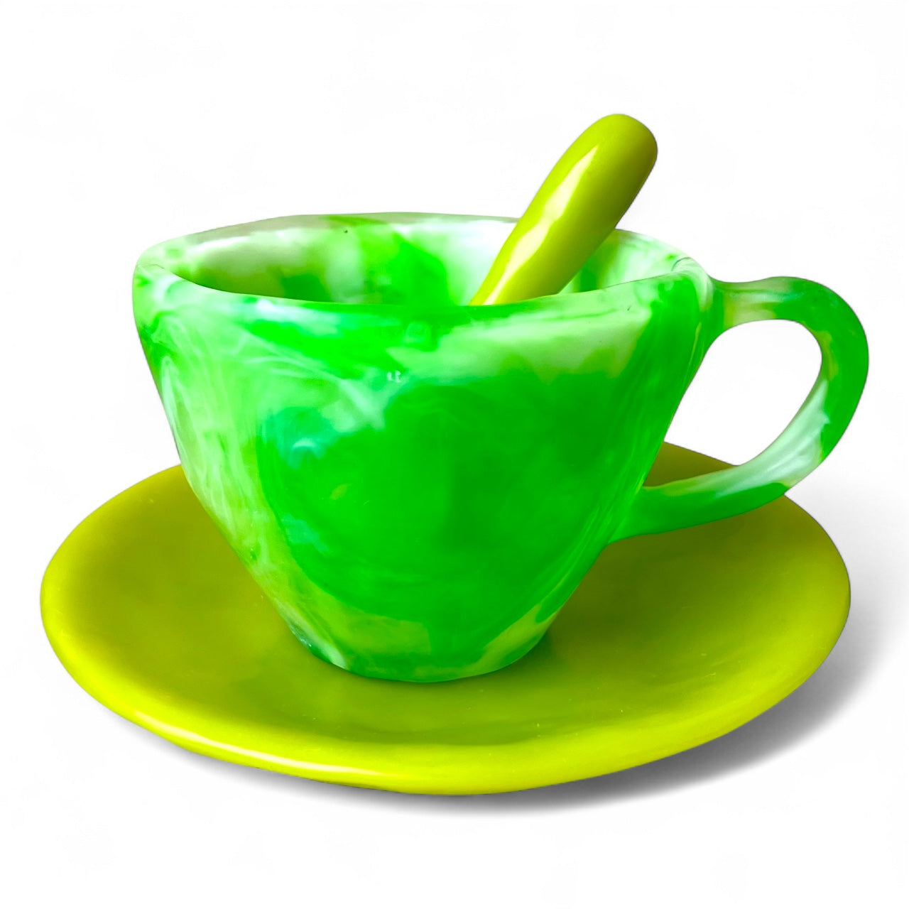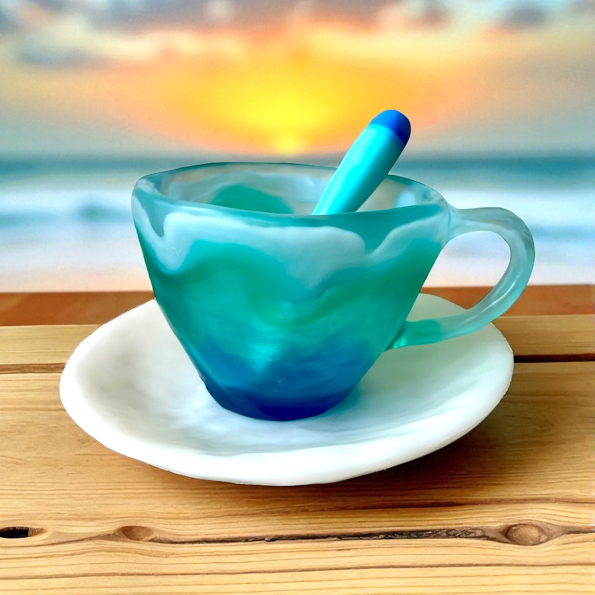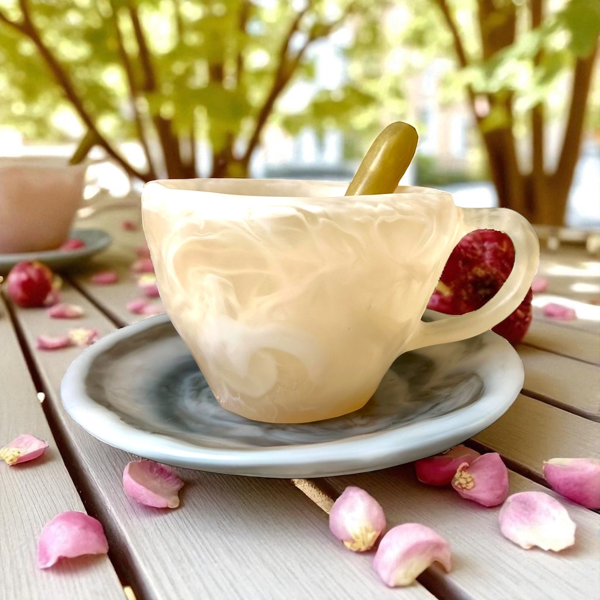 1 POCILLO Grande ☕️ 1 Plato Pequeño + 1 cuchara en Resina Especial 375 ml