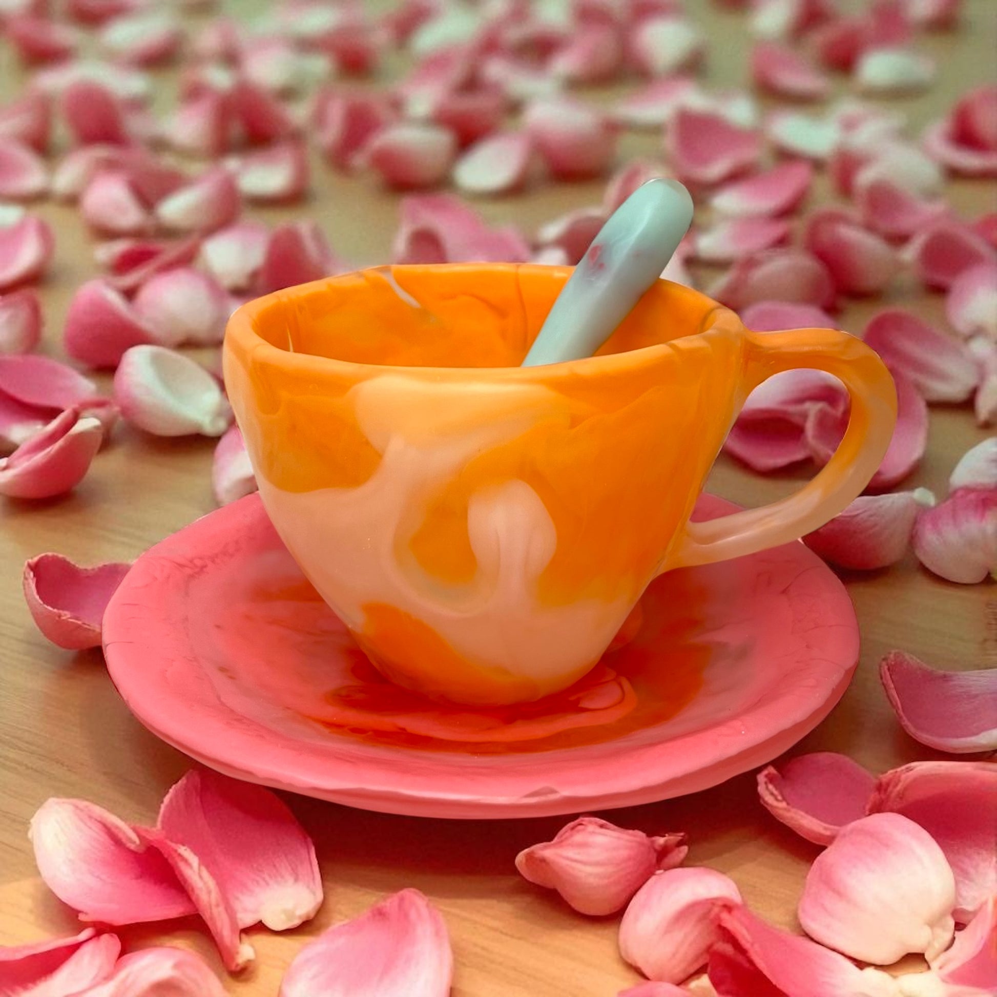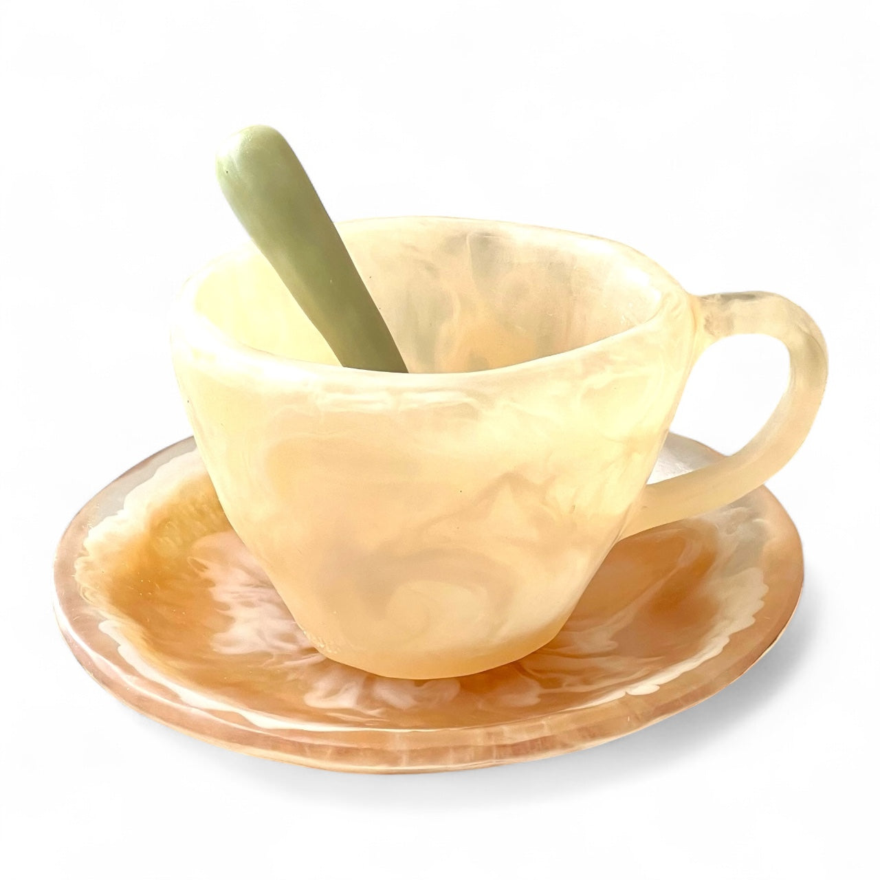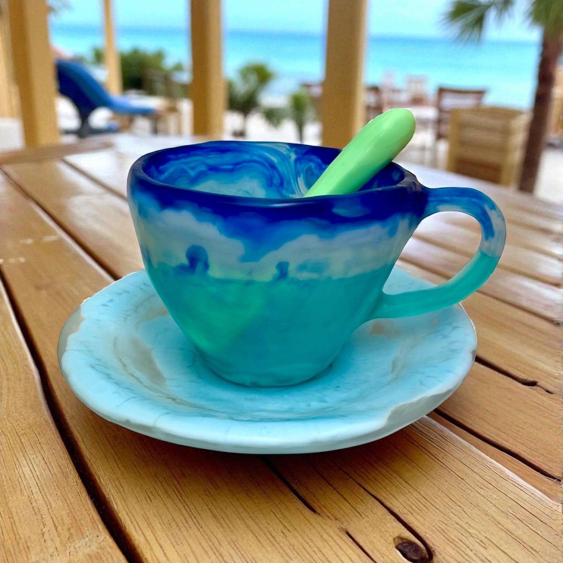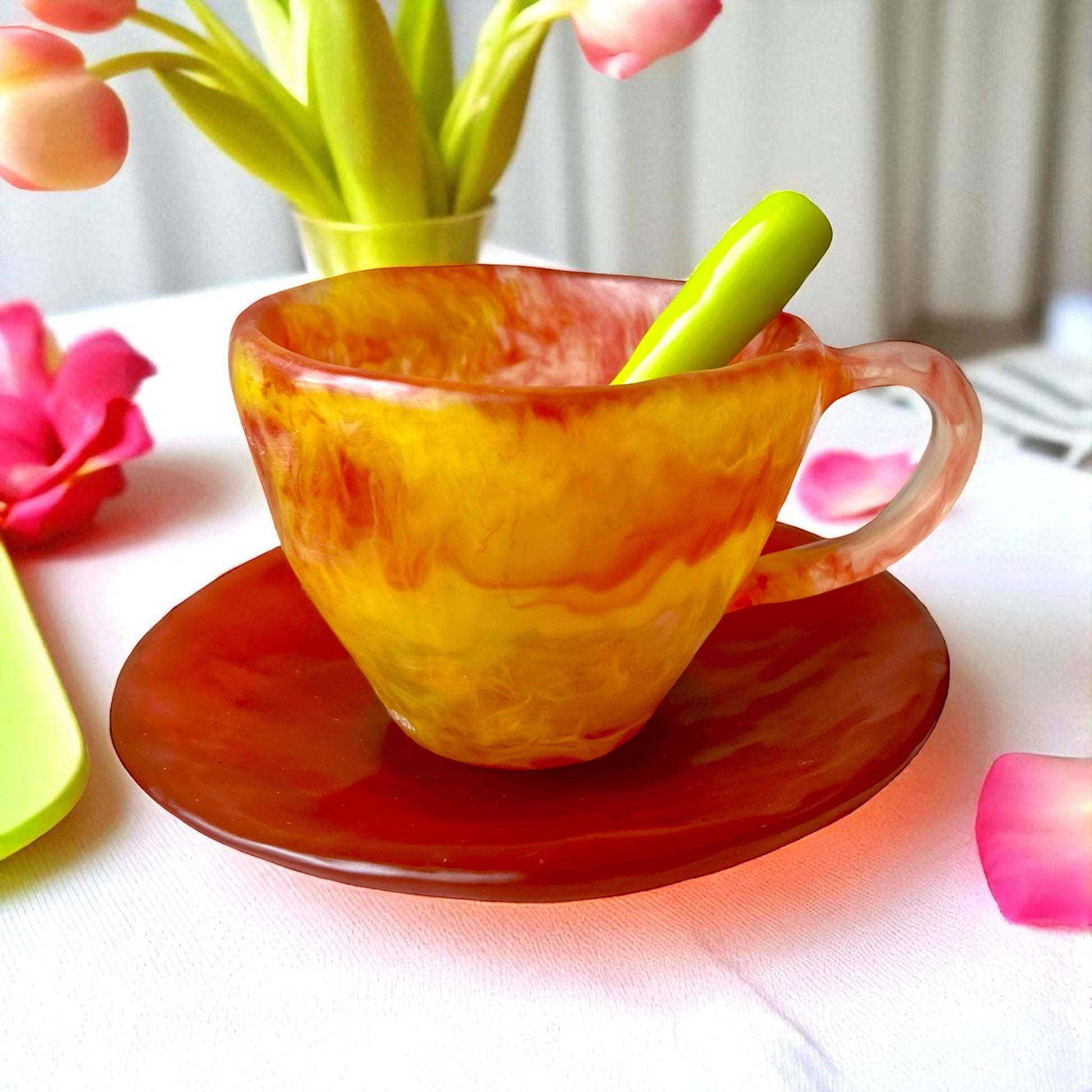 1 POCILLO Grande ☕️ 1 Plato Pequeño + 1 cuchara en Resina Especial 375 ml