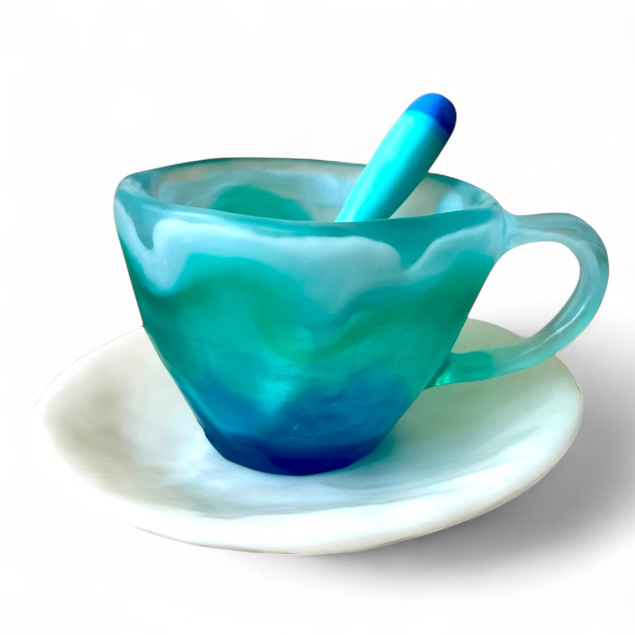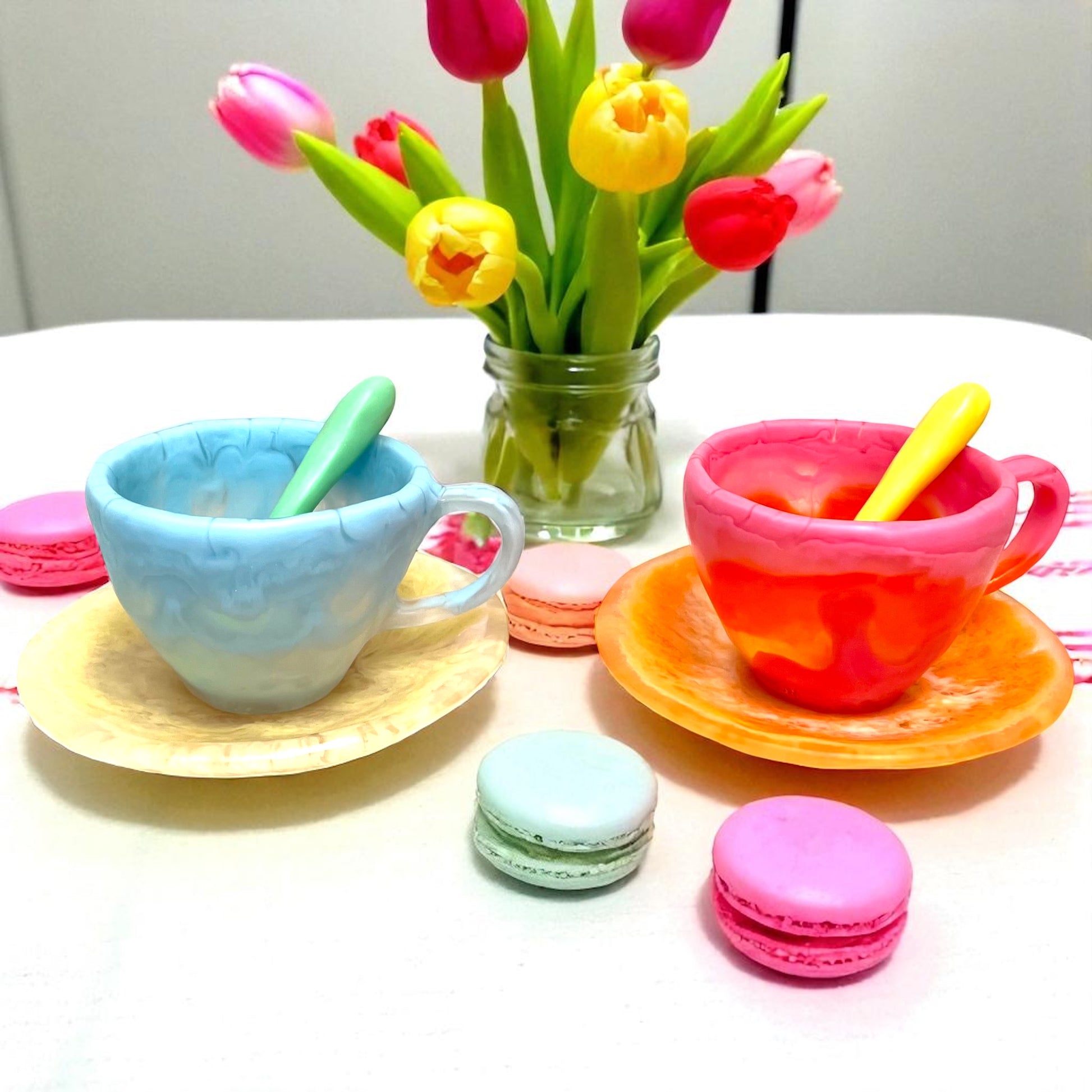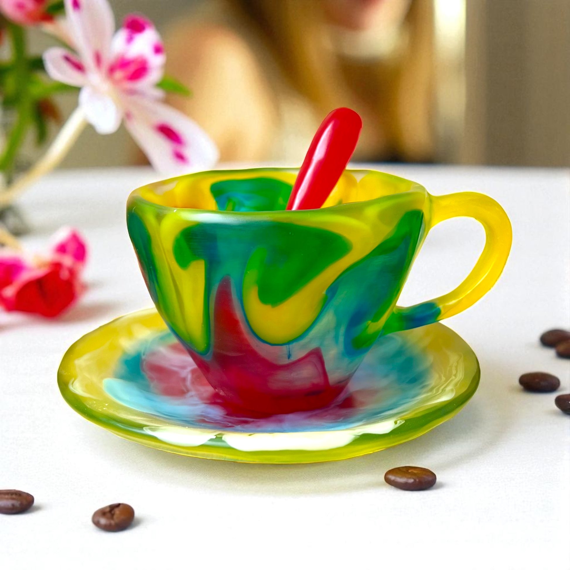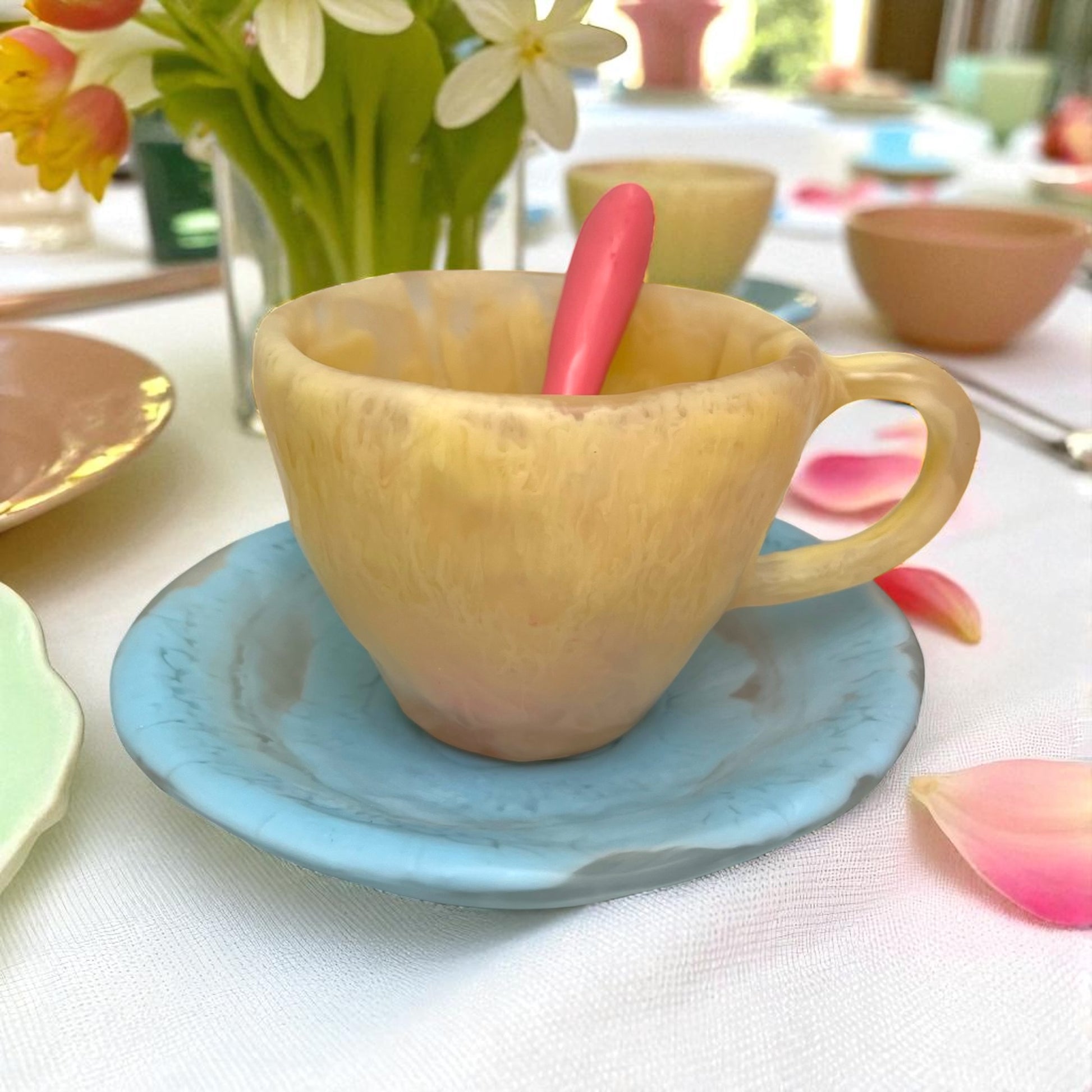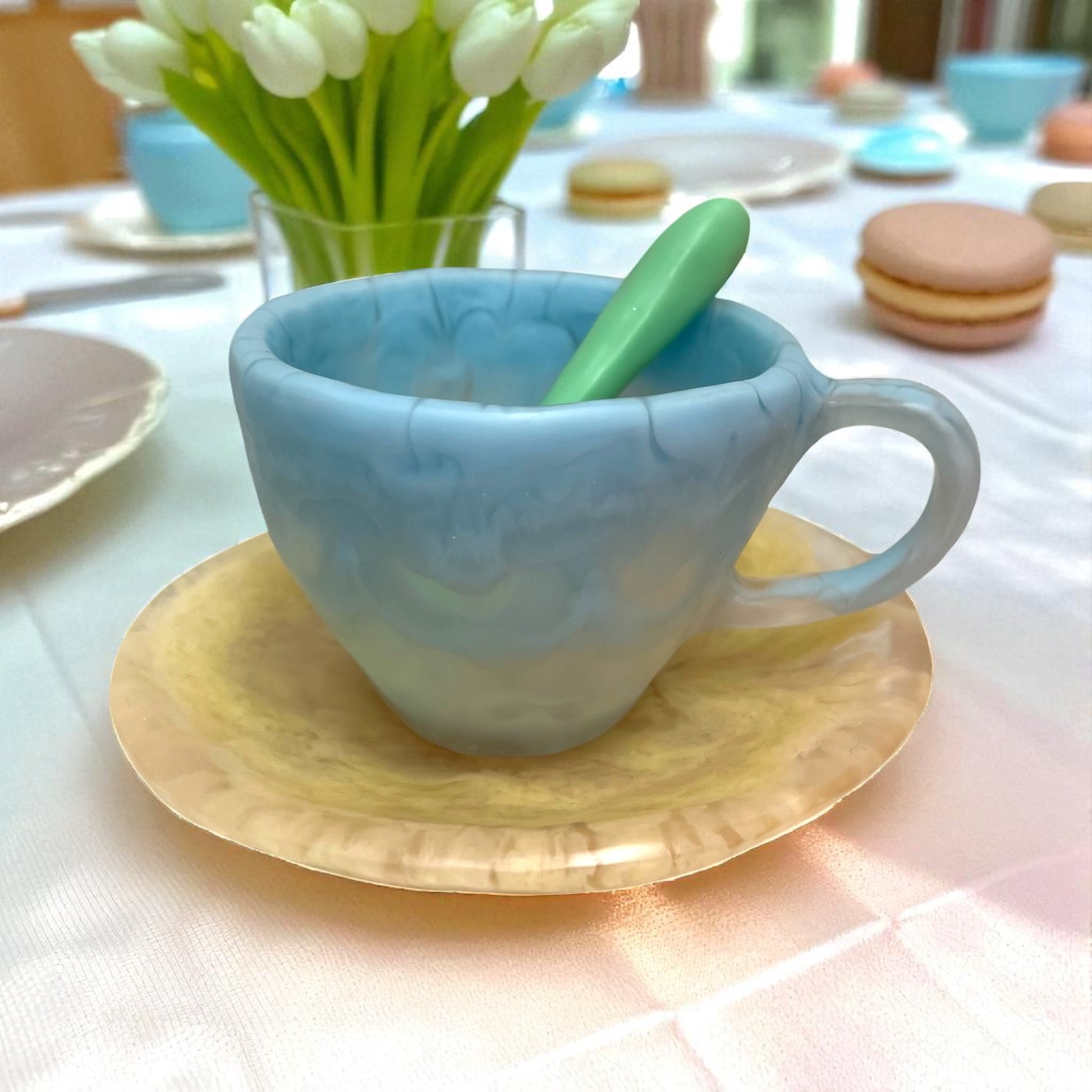 1 POCILLO Grande ☕️ 1 Plato Pequeño + 1 cuchara en Resina Especial 375 ml
