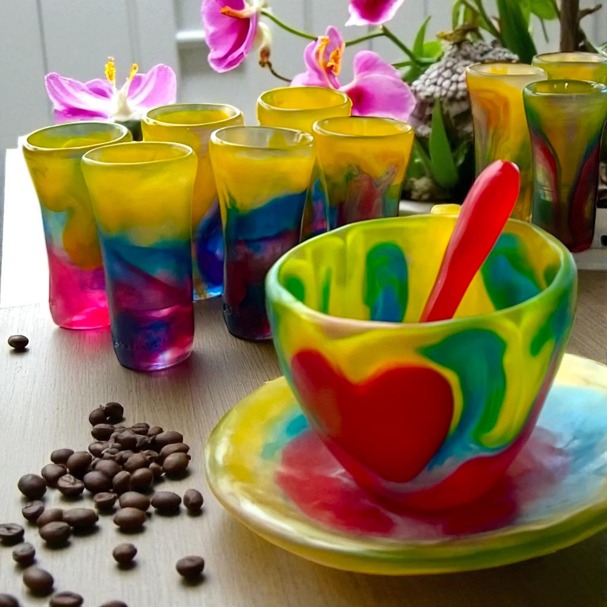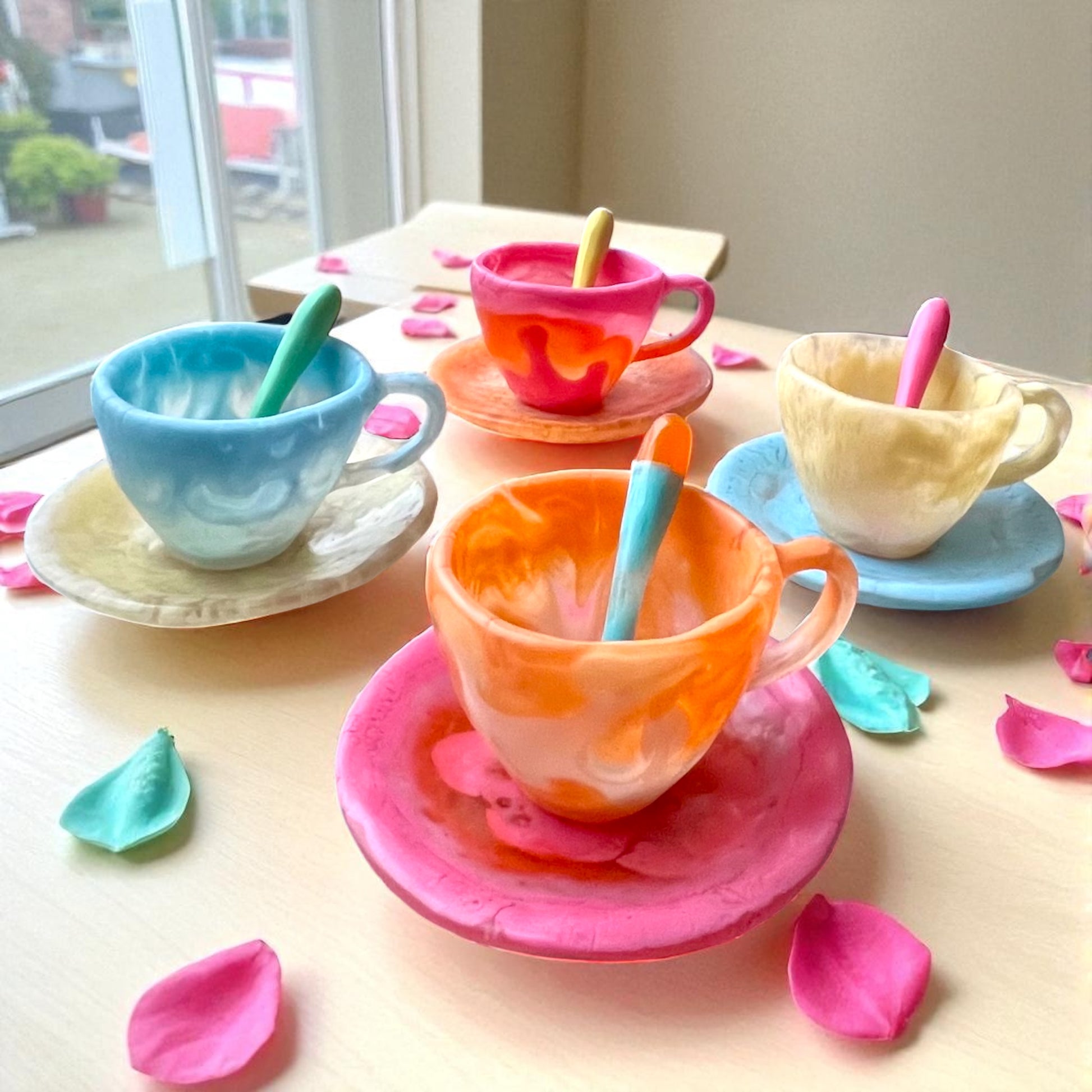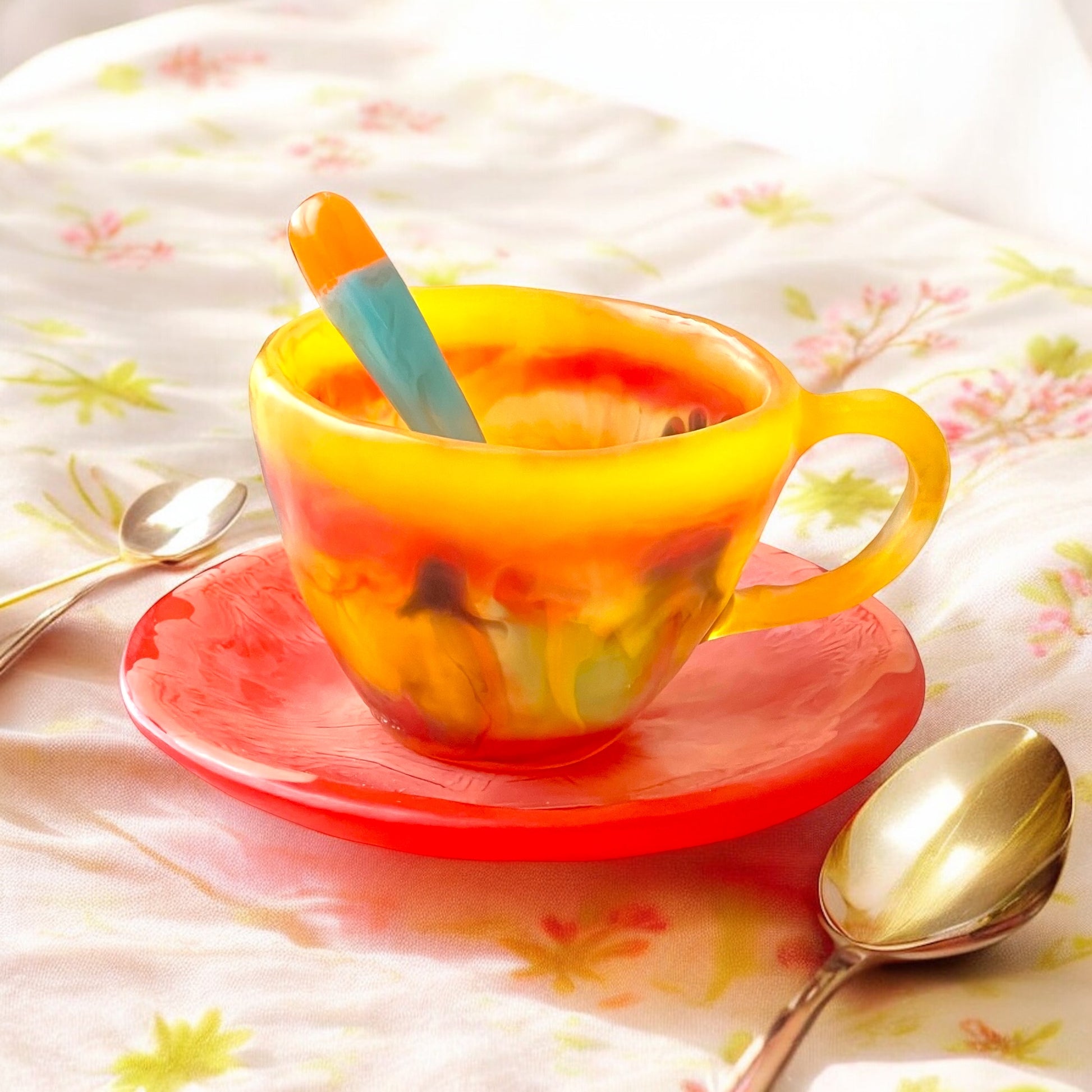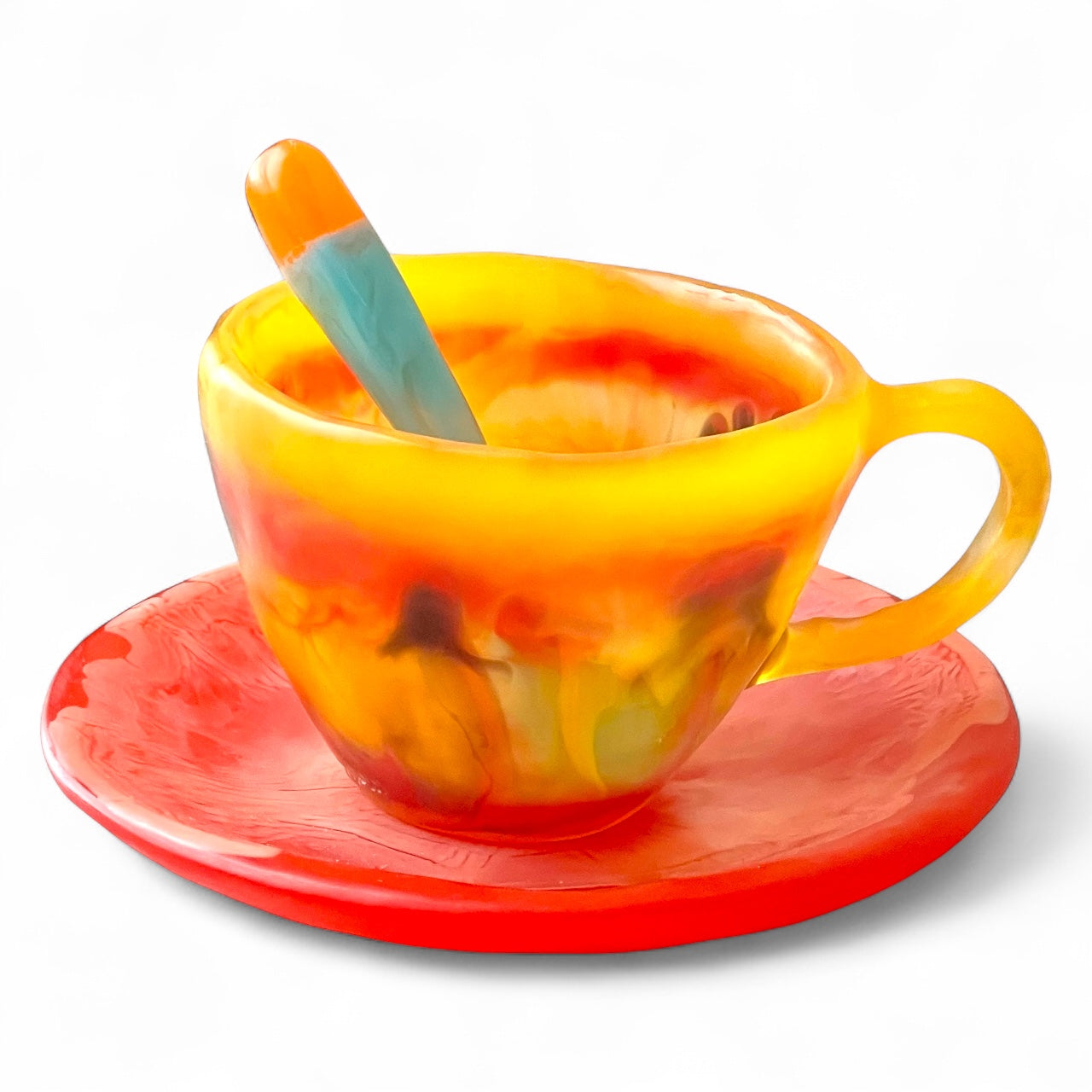 1 POCILLO Grande ☕️ 1 Plato Pequeño + 1 cuchara en Resina Especial 375 ml