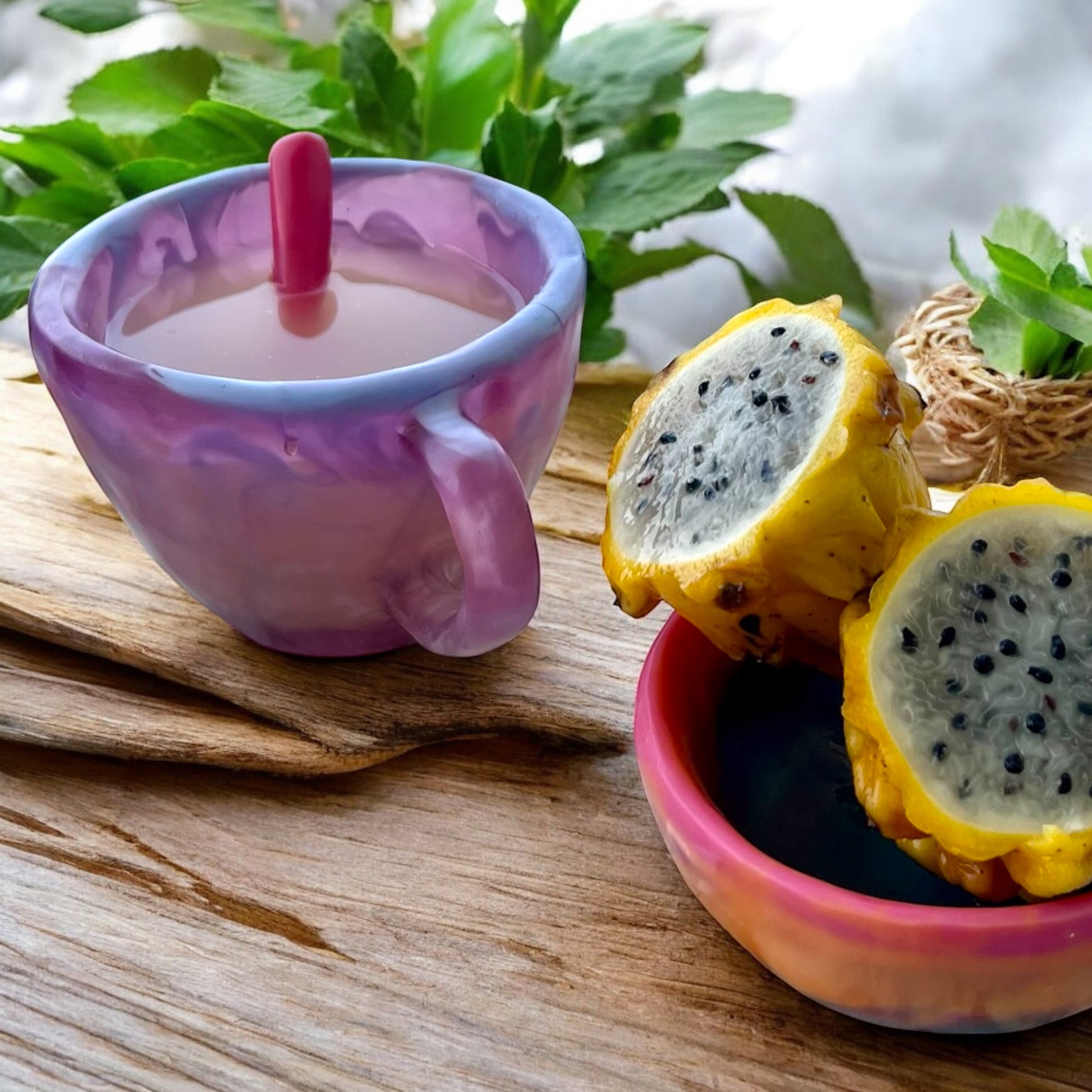 - Set Completo: Pocillo, plato y cuchara diseñados para acompañar tus bebidas calientes favoritas.