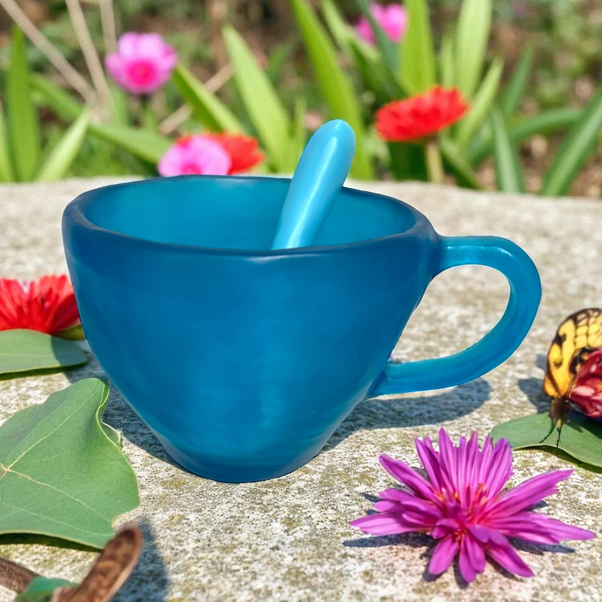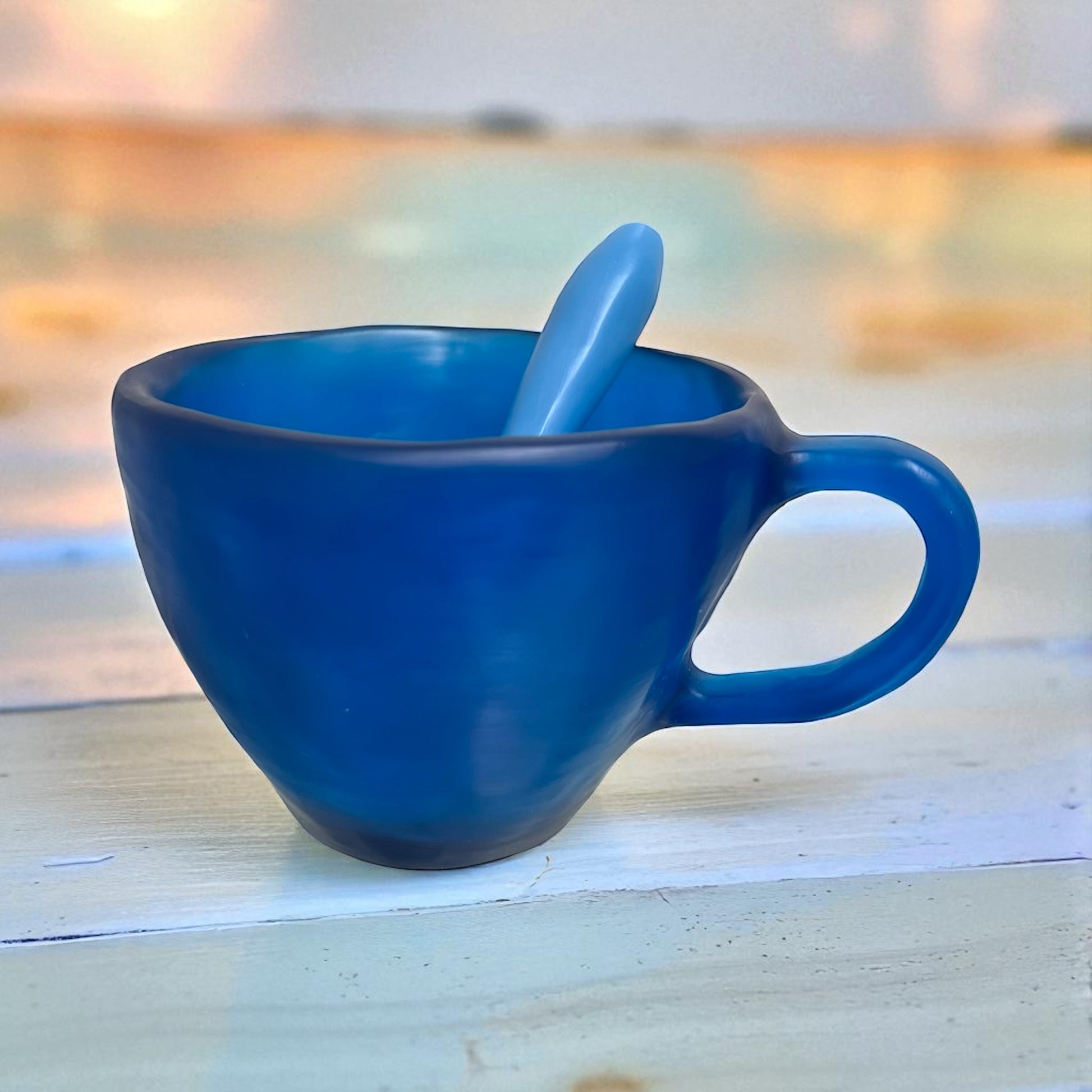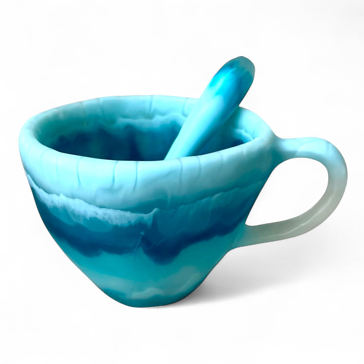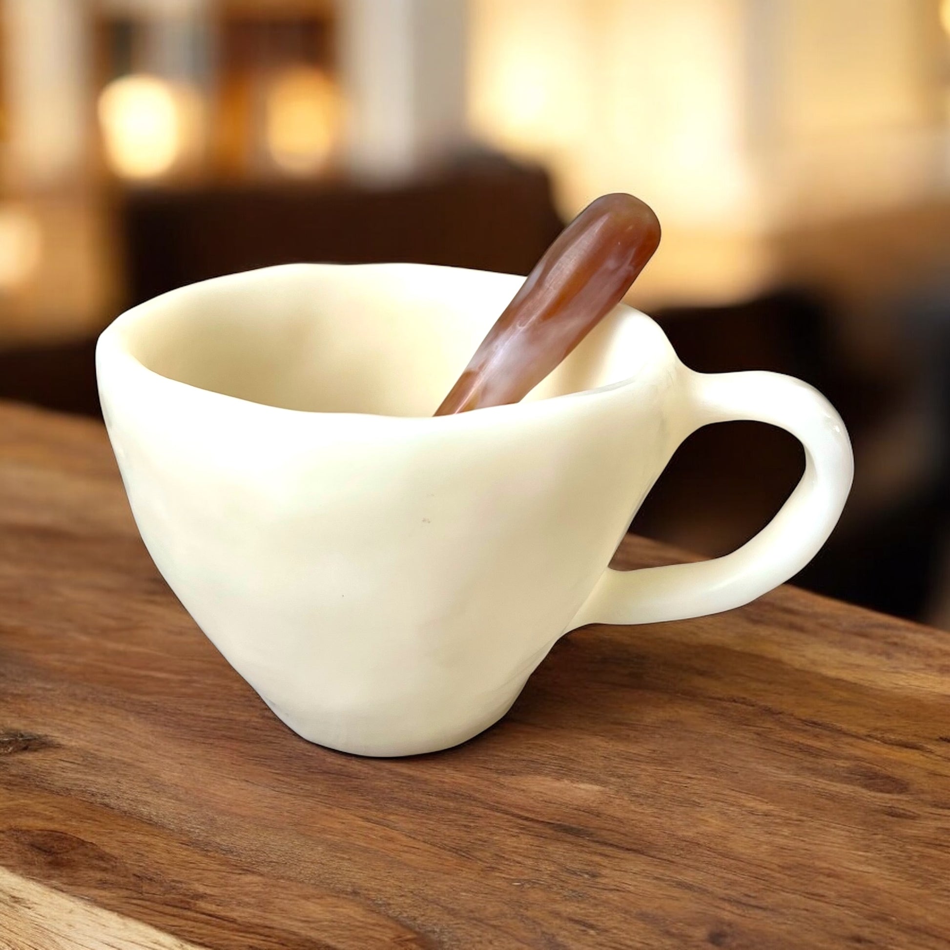 1 POCILLO Grande ☕️ 1 Cuchara en Resina Especial de 375 ml.