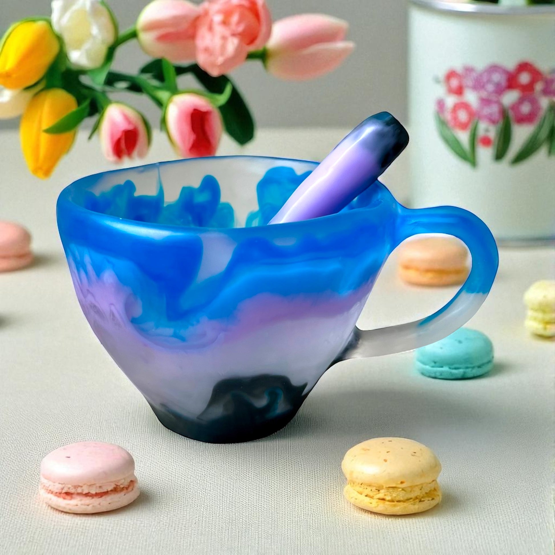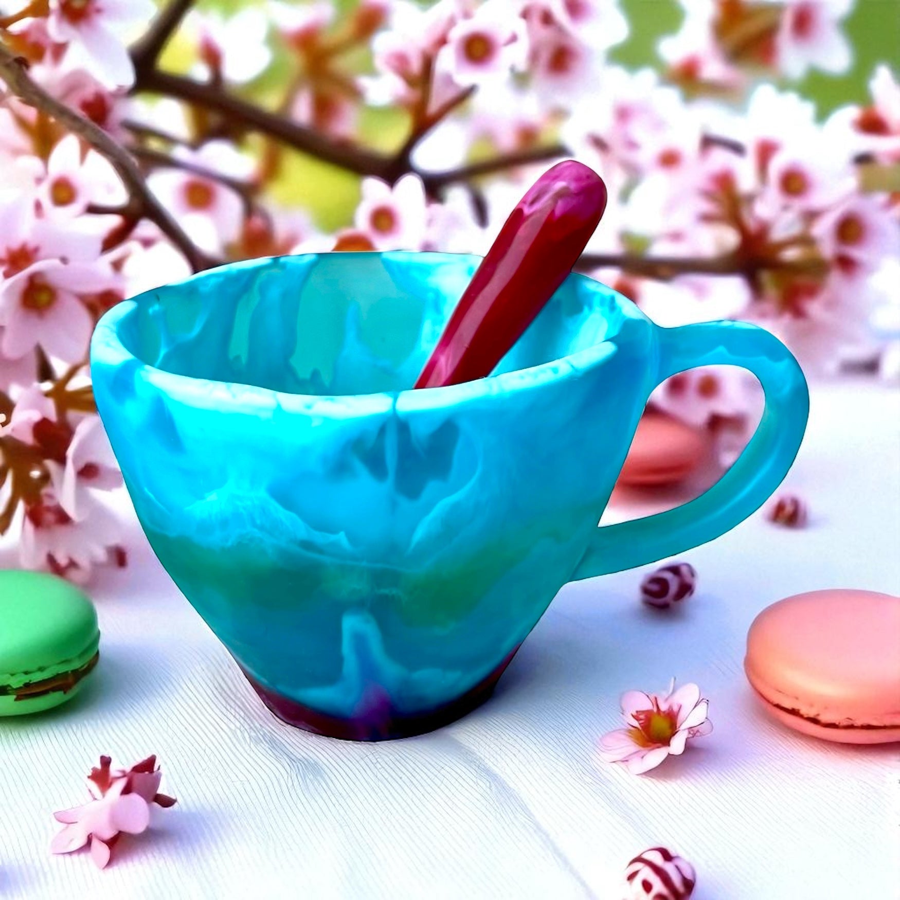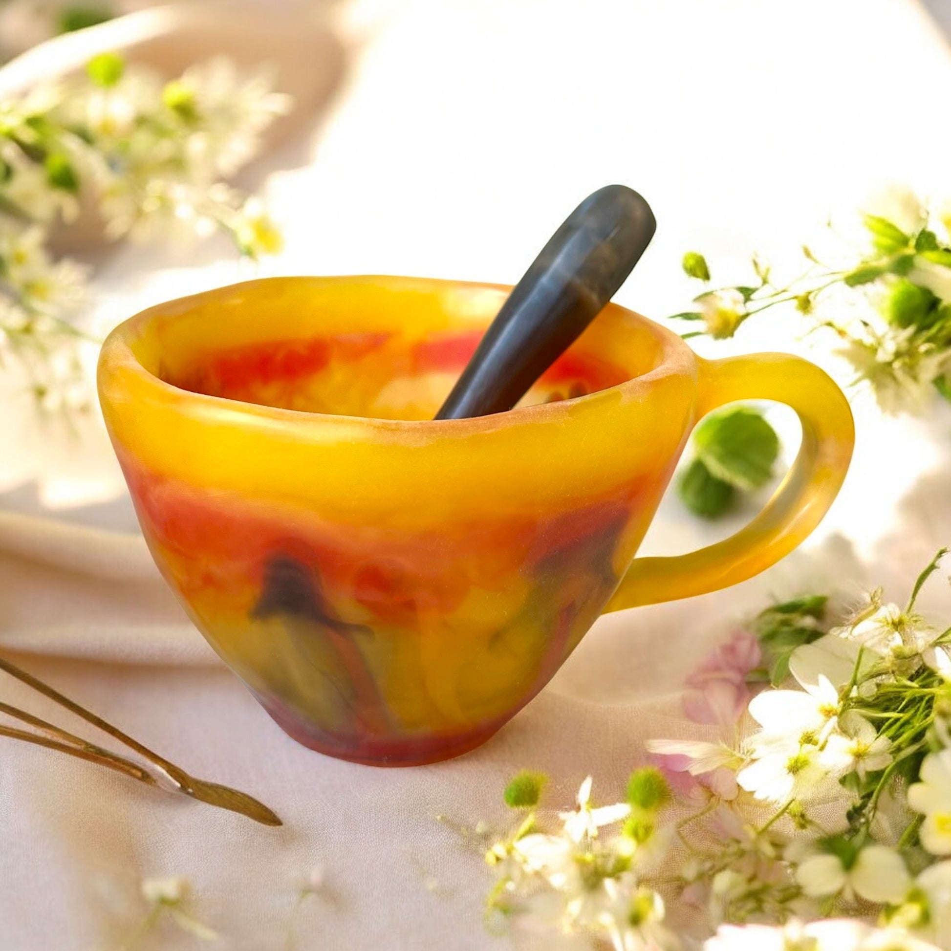 1 POCILLO Grande ☕️ 1 Cuchara en Resina Especial de 375 ml.