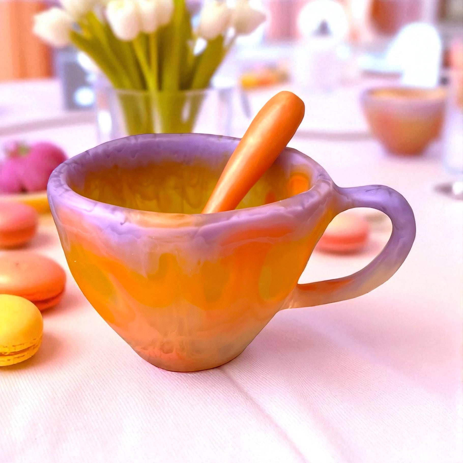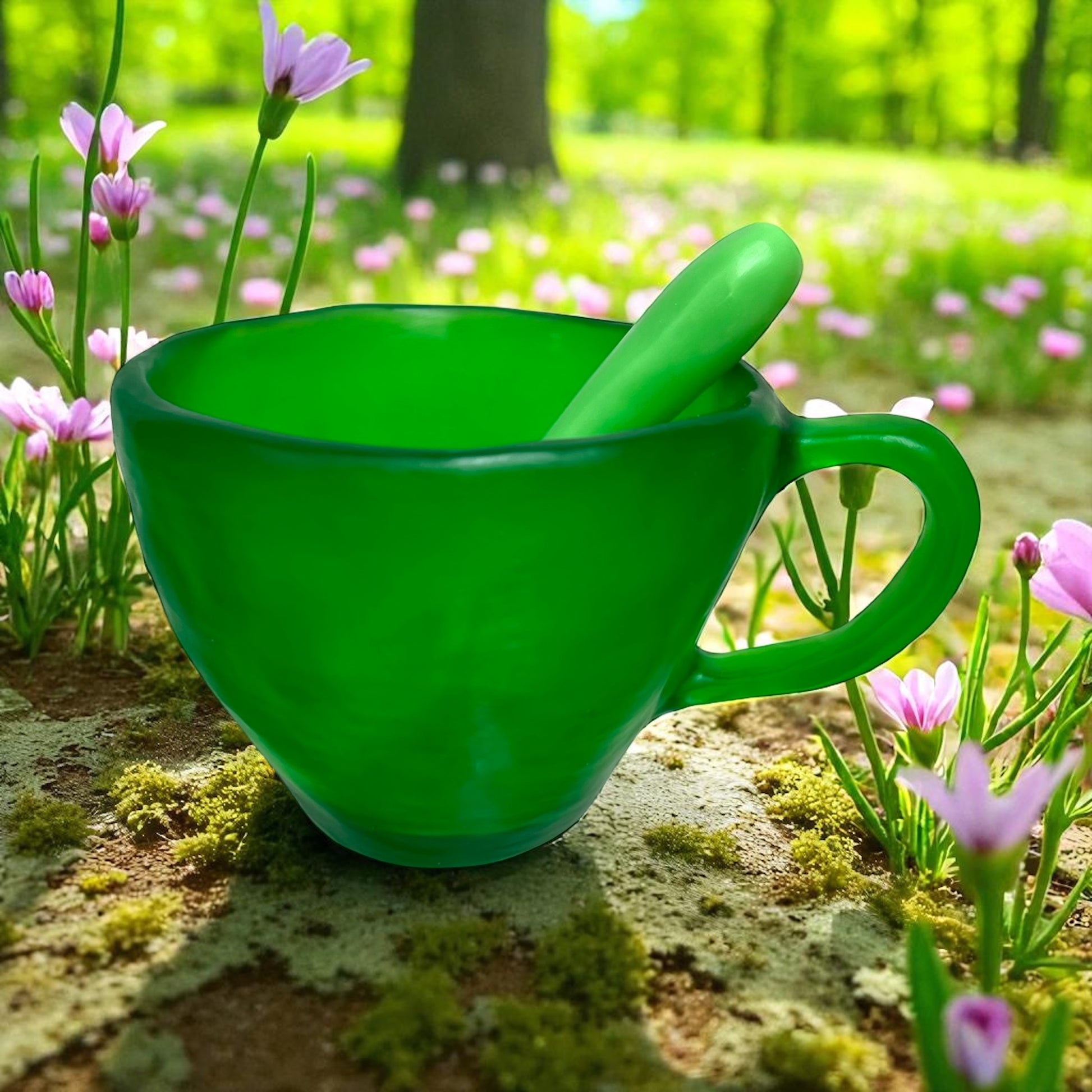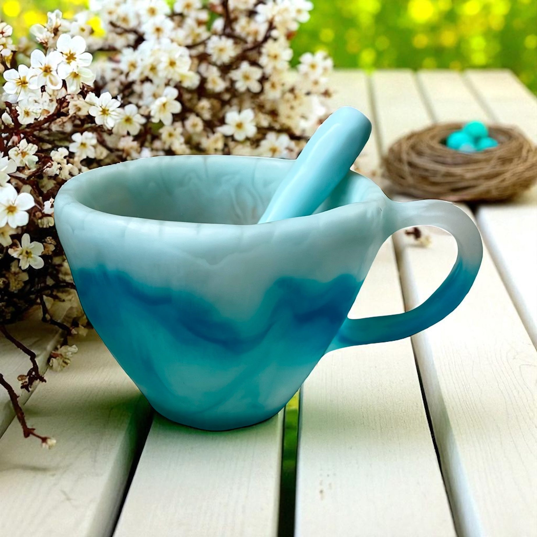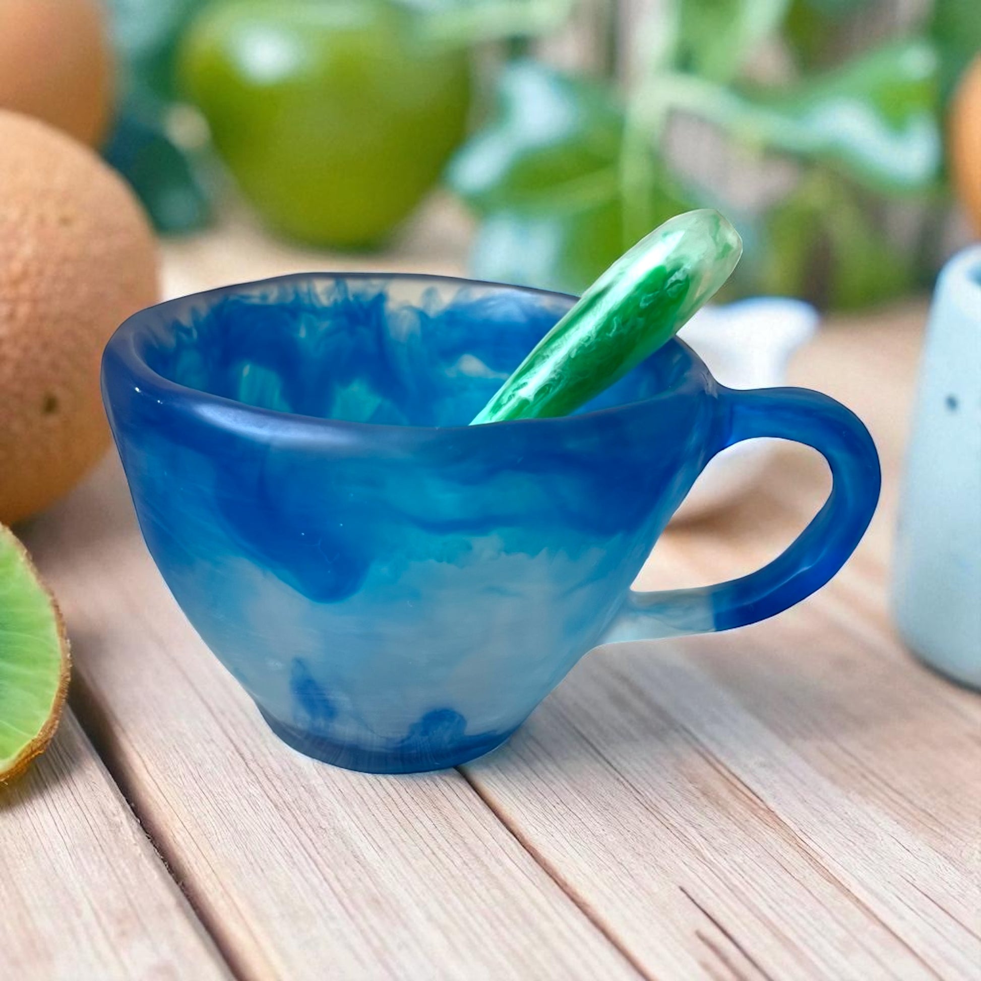 1 POCILLO Grande ☕️ 1 Cuchara en Resina Especial de 375 ml.