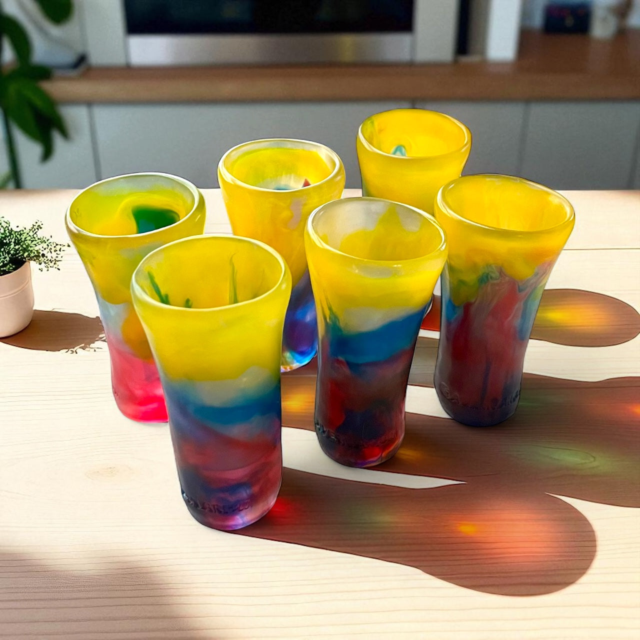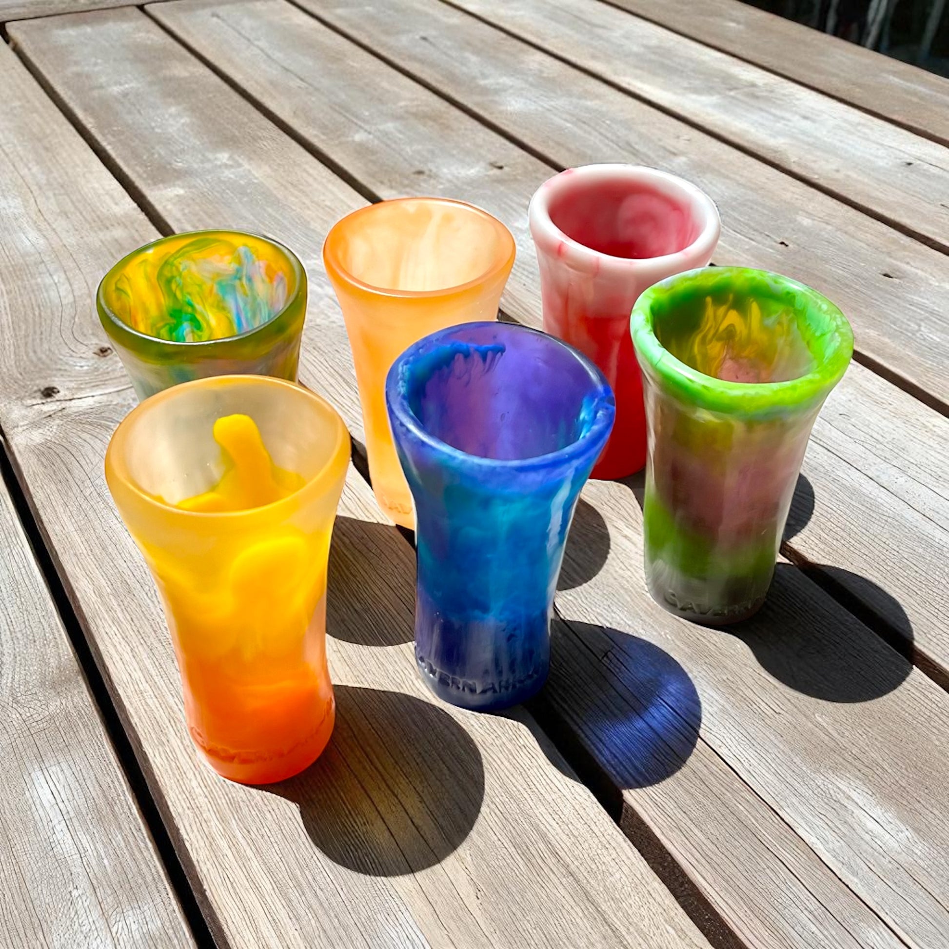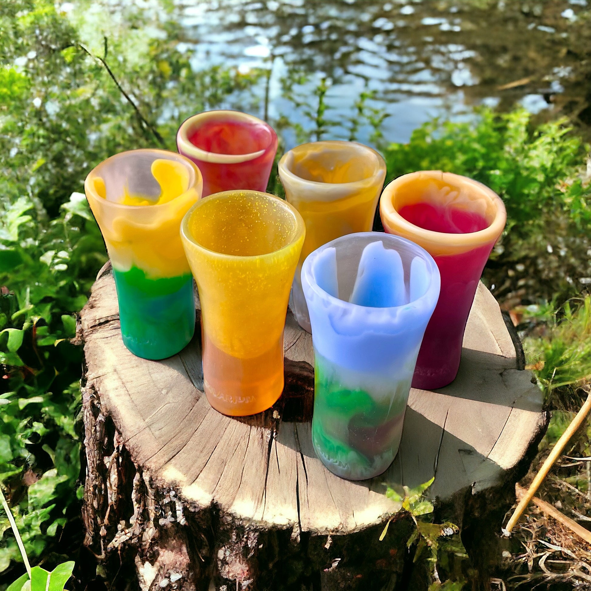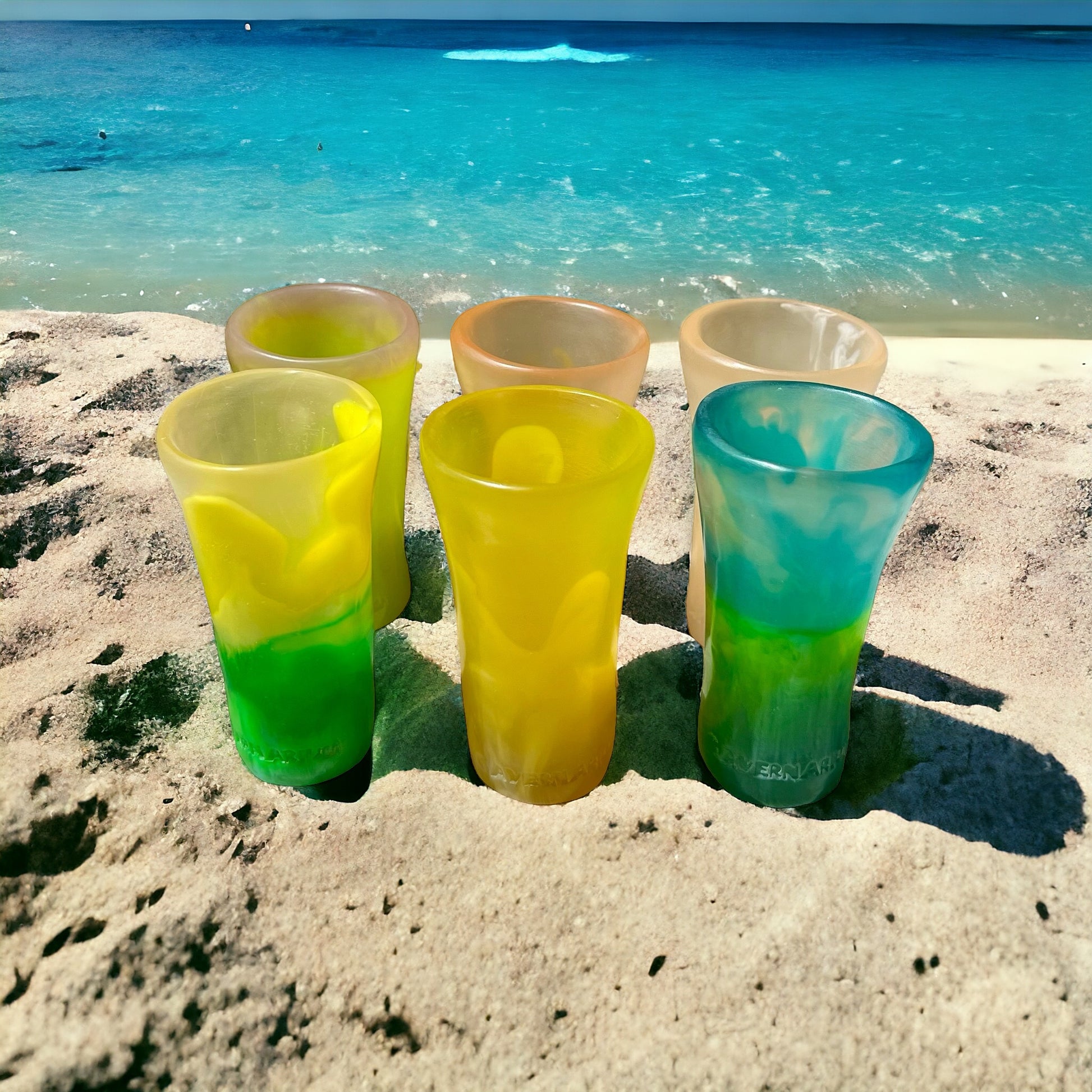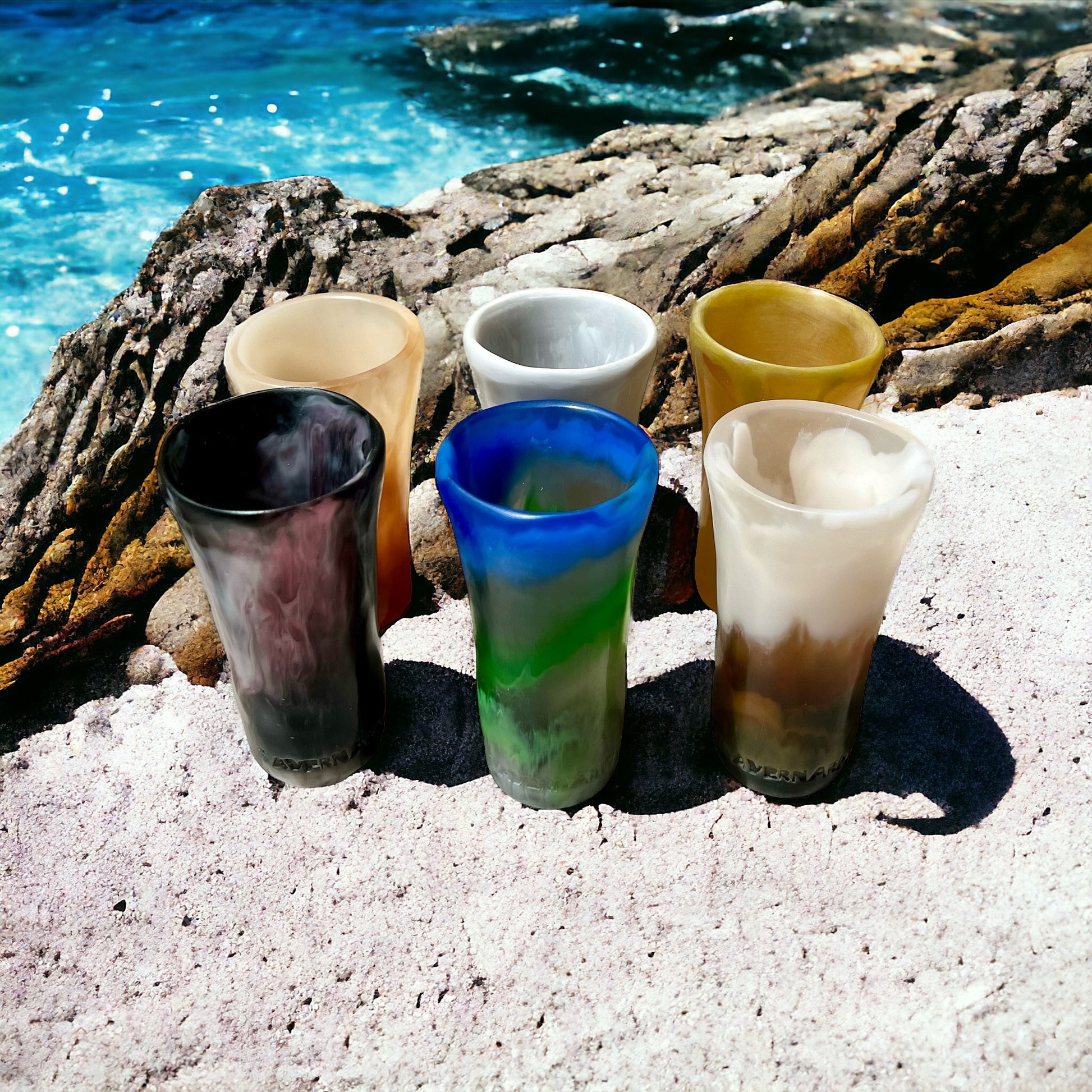 - Diseño Irregular y Sofisticado: Cada shot tiene una textura y forma única que eleva la experiencia de beber.