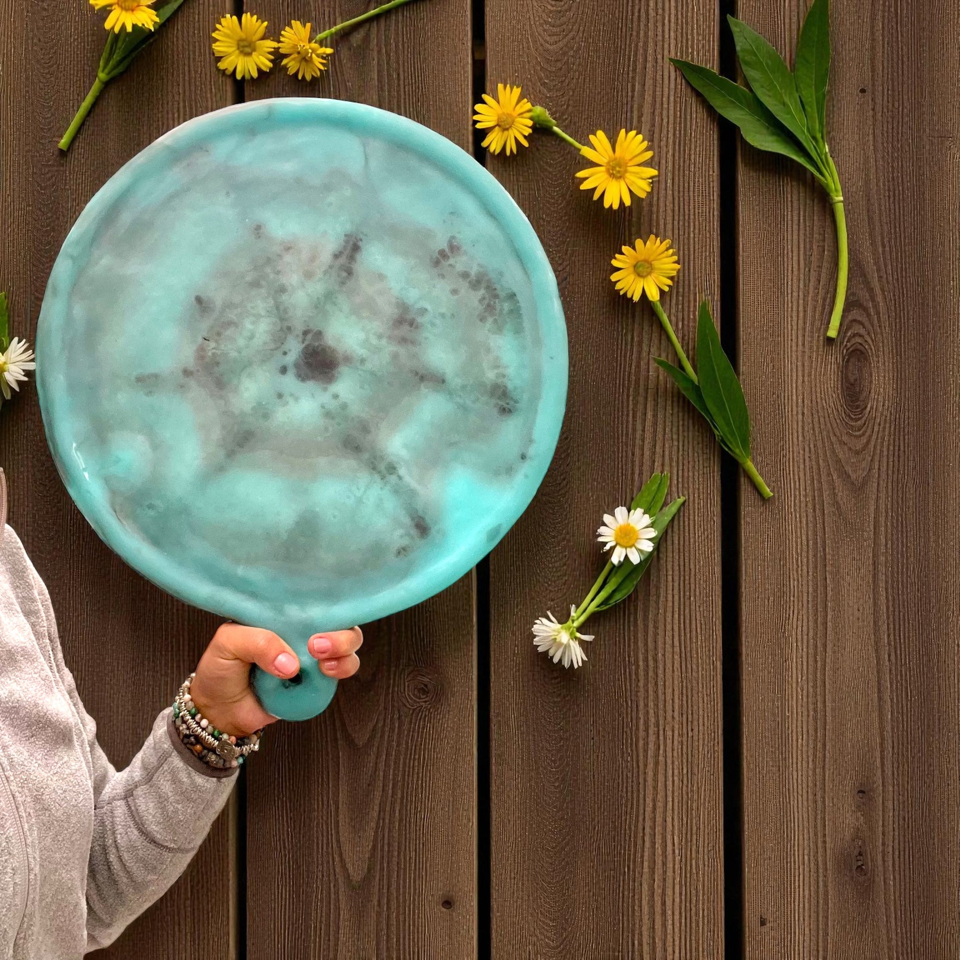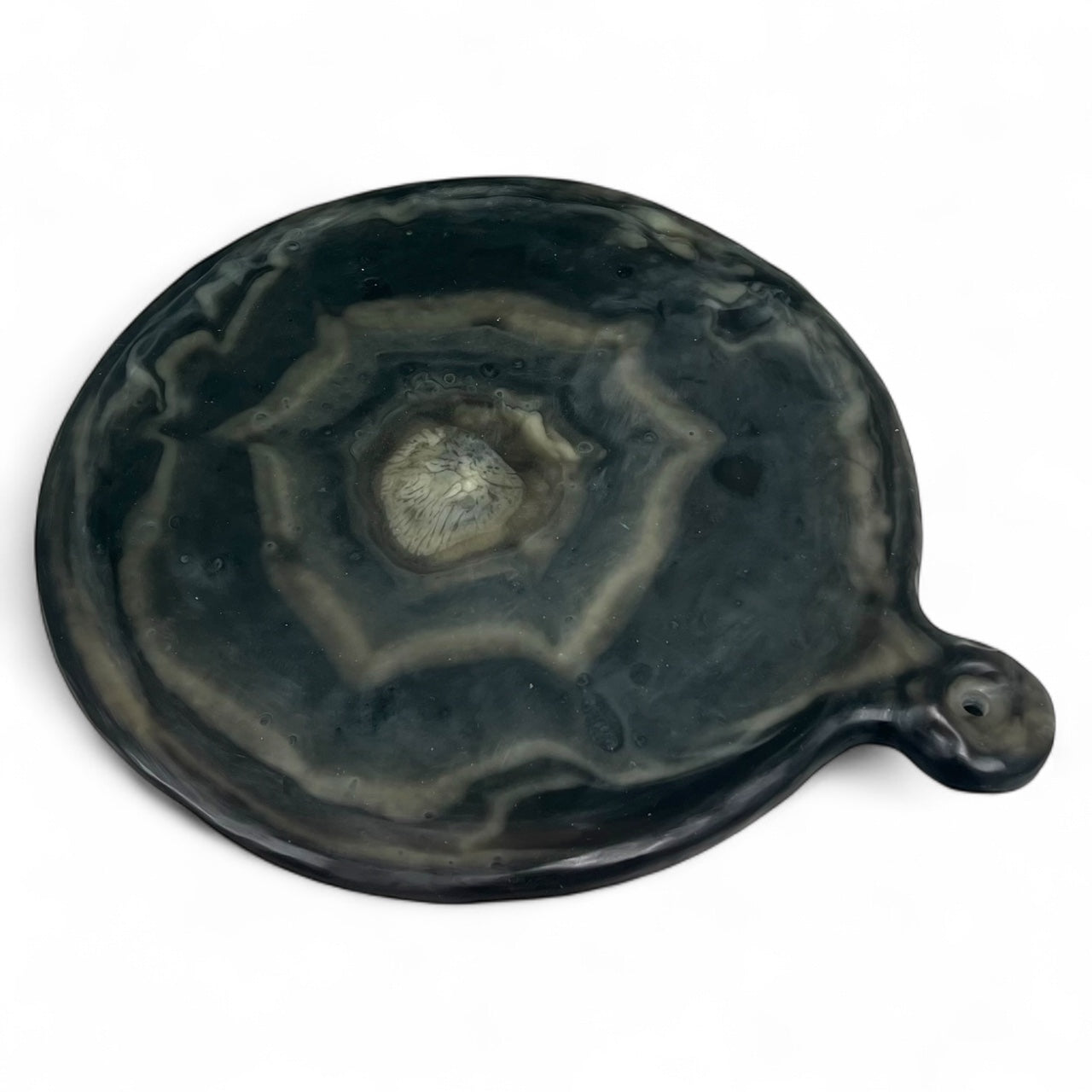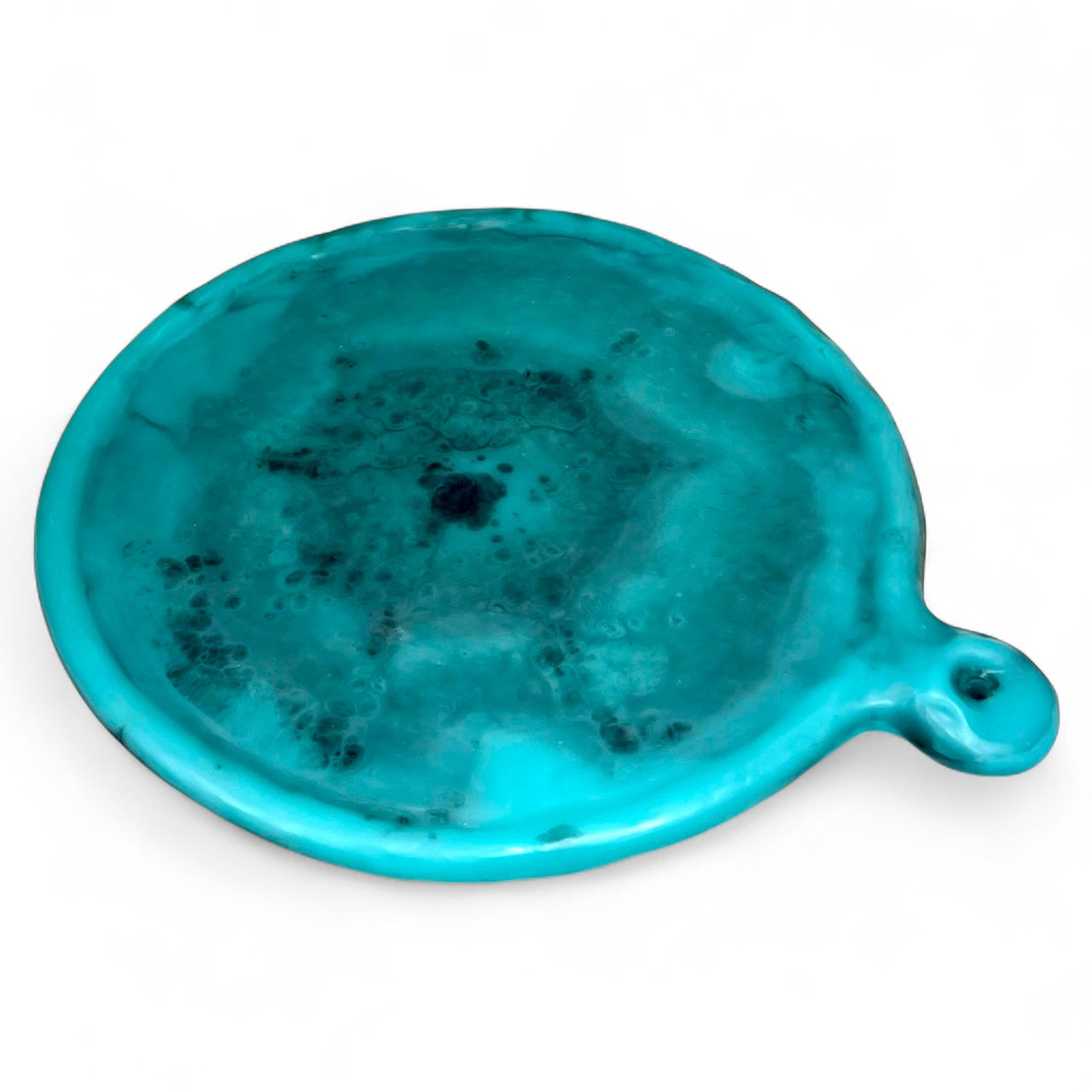 Disfruta la pizza como nunca antes. Nuestra Bandeja para Pizza Cavernarium, elaborada a mano en resina especial, combina funcionalidad, ergonomía y un diseño orgánico que convierte cada cena en una experiencia sensorial. Su mango curvo facilita el agarre y maniobra, mientras que el orificio integrado permite colgarla y lucirla como una pieza decorativa en tu cocina.