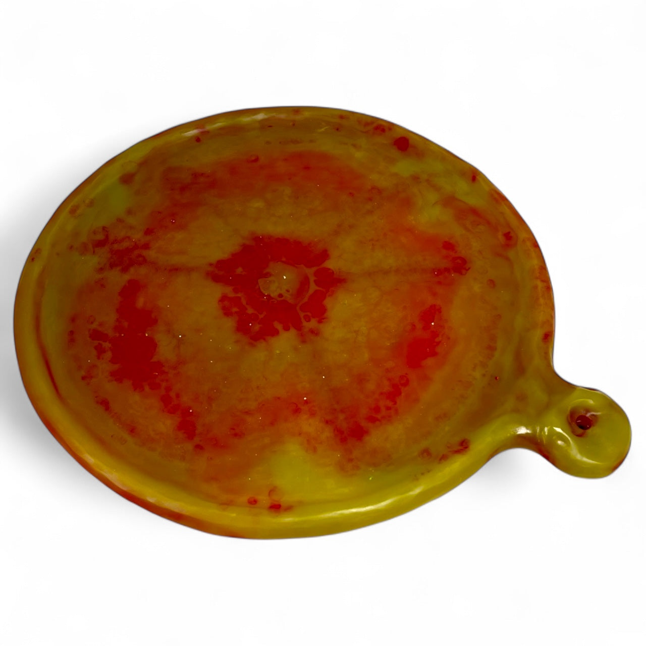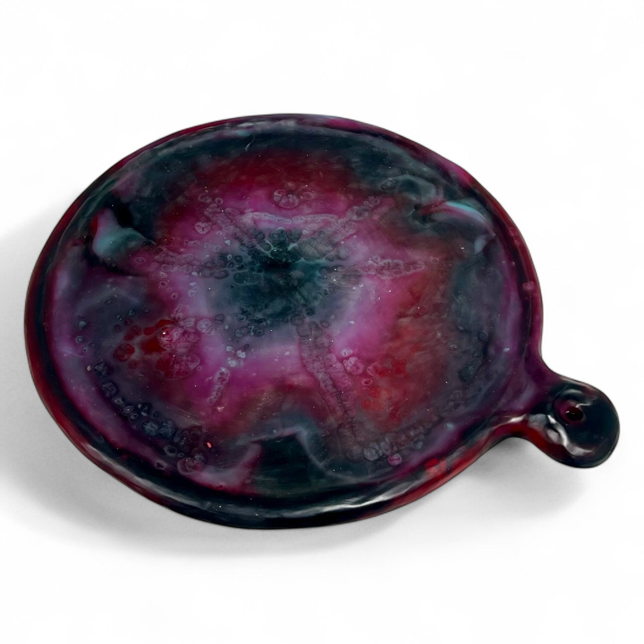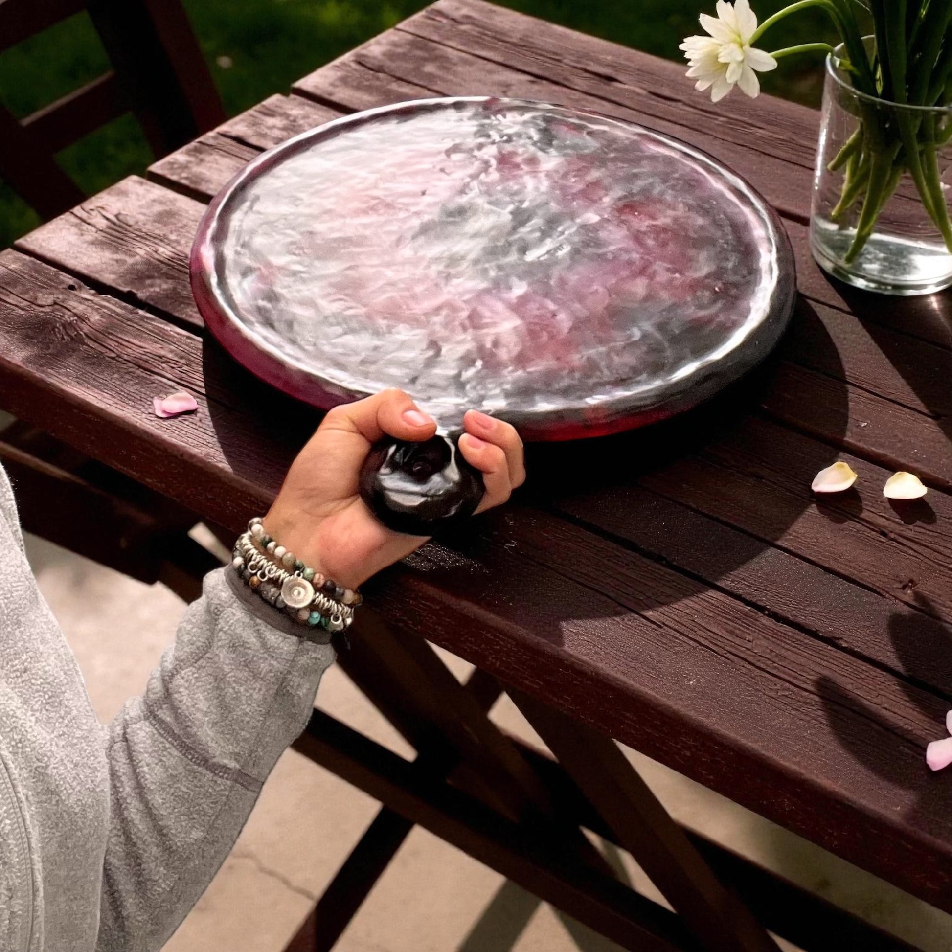 Disfruta la pizza como nunca antes. Nuestra Bandeja para Pizza Cavernarium, elaborada a mano en resina especial, combina funcionalidad, ergonomía y un diseño orgánico que convierte cada cena en una experiencia sensorial. Su mango curvo facilita el agarre y maniobra, mientras que el orificio integrado permite colgarla y lucirla como una pieza decorativa en tu cocina.