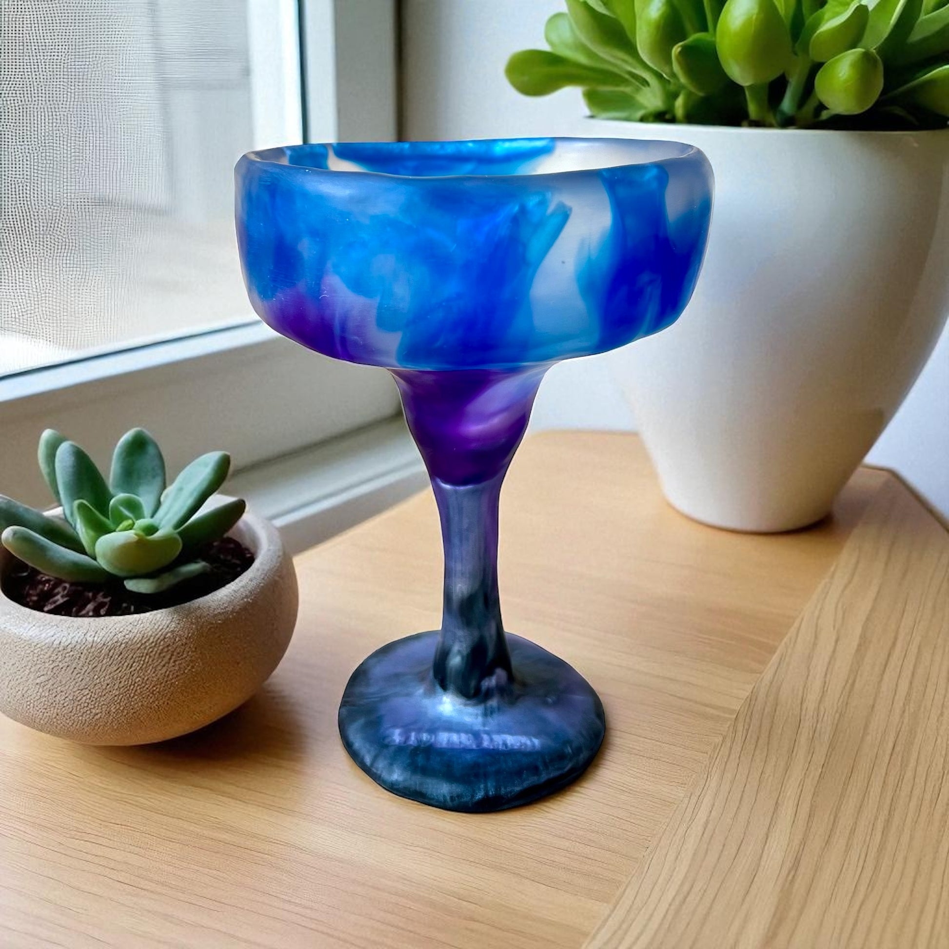 Más que una copa, una invitación a celebrar. Su forma escultural, inspirada en los clásicos del cóctel tropical, se reinventa en una versión artesanal hecha a mano en resina Cavernarium: ultra resistente, sofisticada y con carácter.