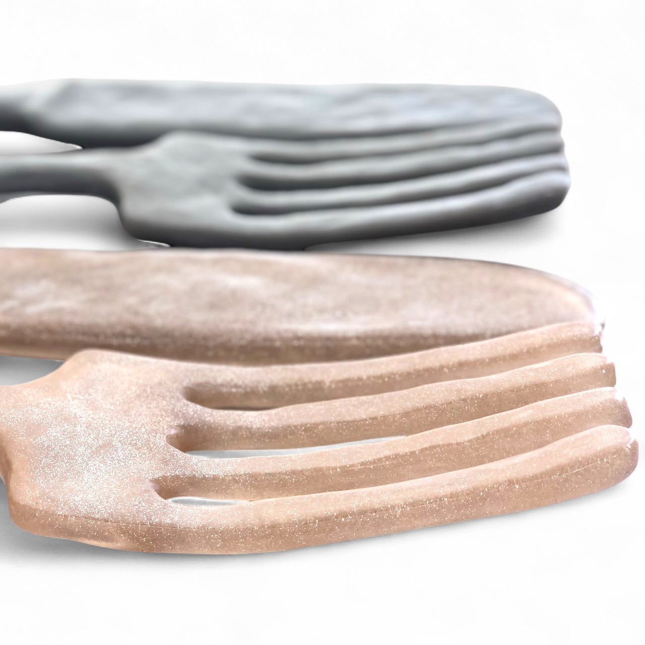 Más que utensilios, auténticas esculturas de diseño. El Juego de Tenedor y Cuchillo Gigantes Cavernarium, elaborados a mano en resina especial, son piezas decorativas que transforman cualquier espacio con un estilo único y atrevido. Con 60 cm de largo, su acabado gris metalizado evoca un aire industrial y contemporáneo, aunque puedes personalizarlos en el color que desees para adaptarlos a tu ambiente.